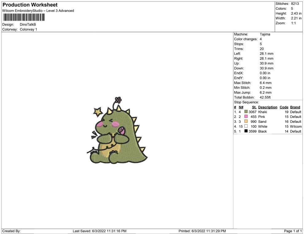 Dino Talk B embroidery design