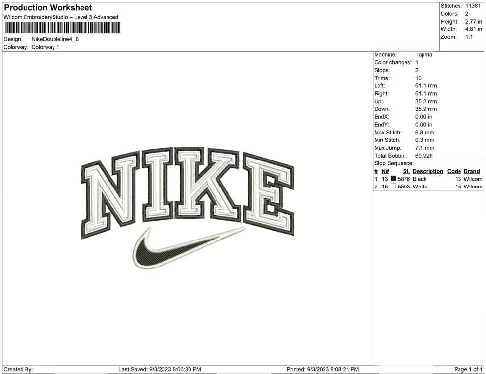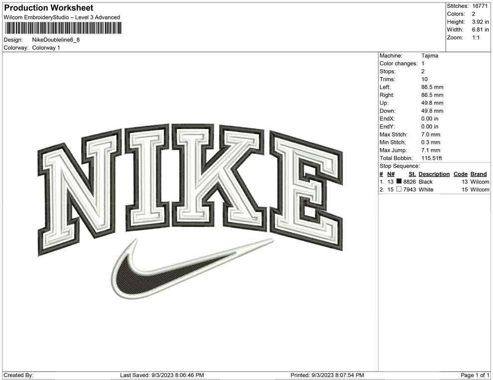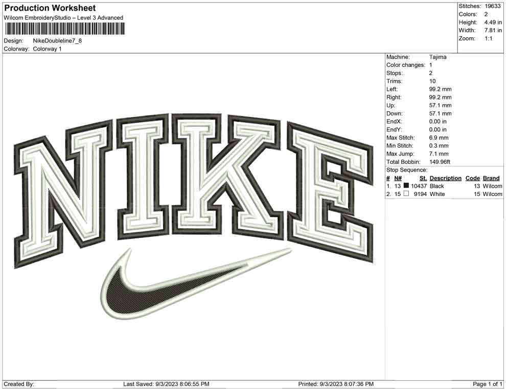 Nike Double Outline embroidery design