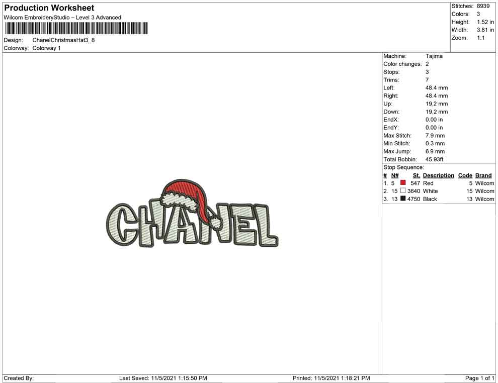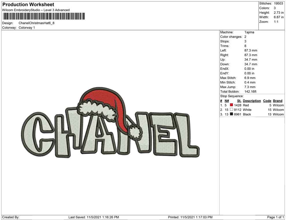 Chanel Christmas Hat embroidery design