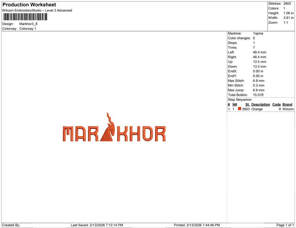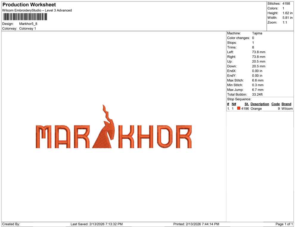 Markhor embroidery design