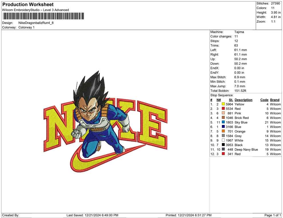 Nike Dragonballz Run embroidery design