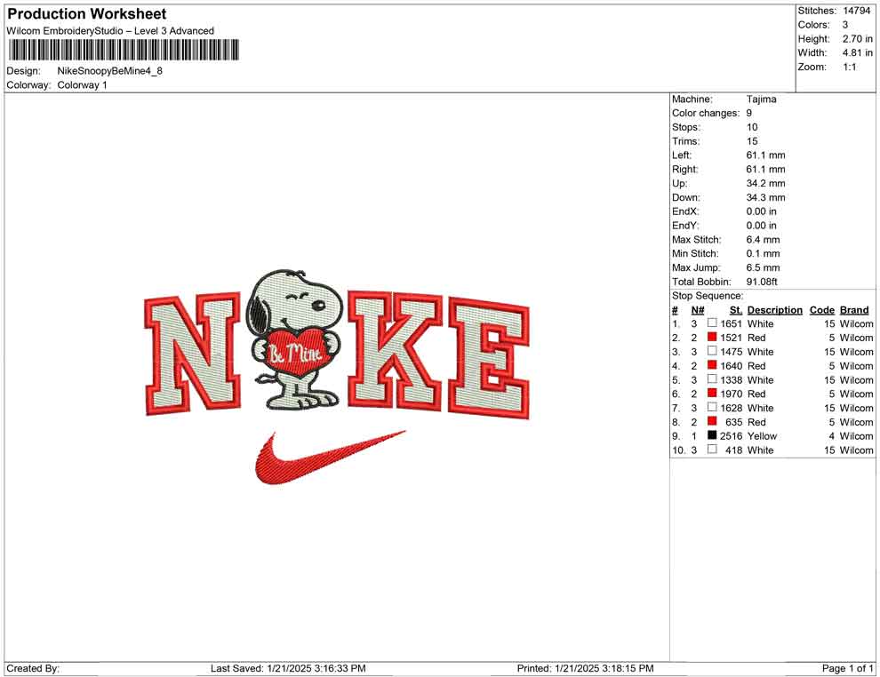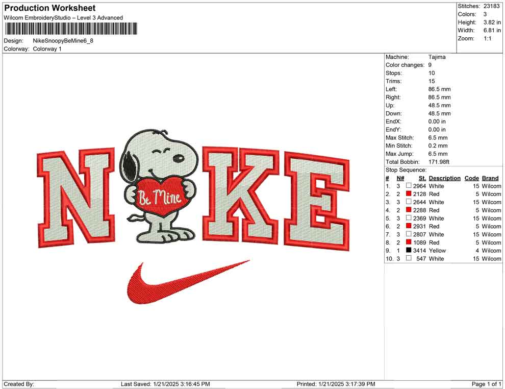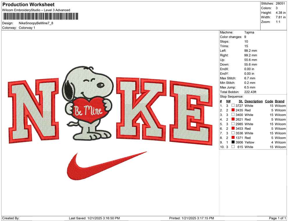 Nike Snoopy Be Mine embroidery design