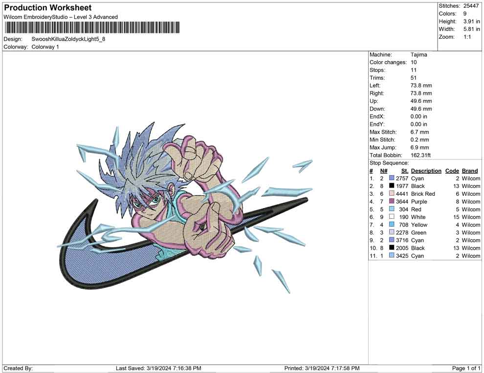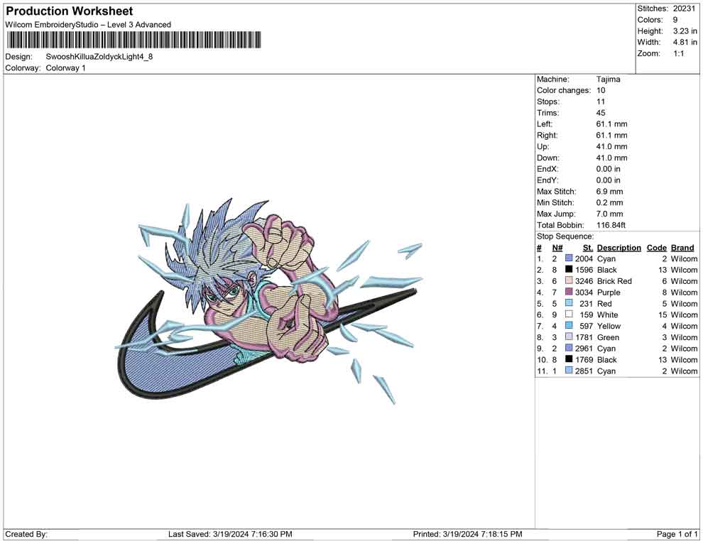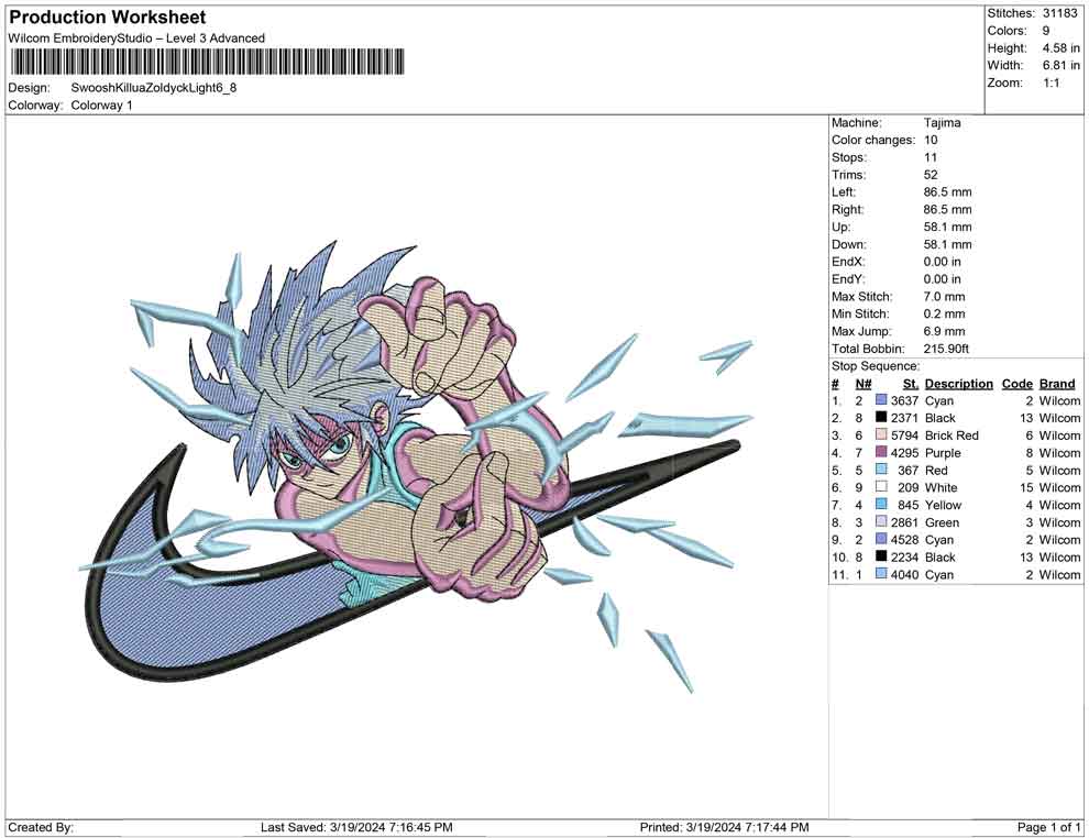 Swoosh Killua Zoldyck Light embroidery design