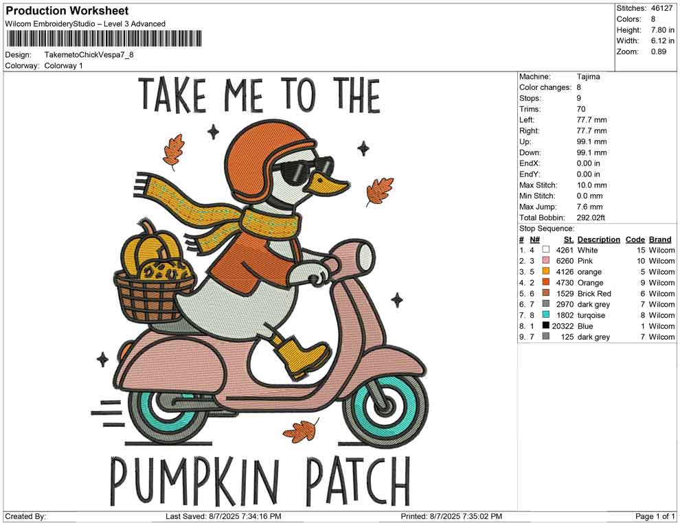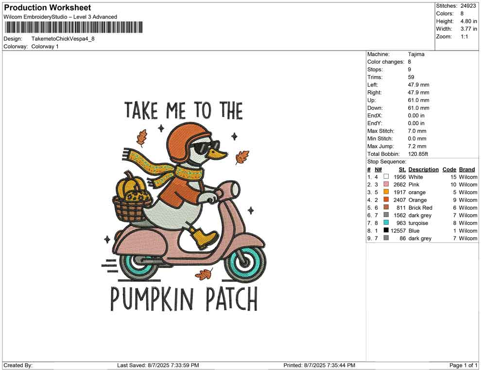 Takemeto Chick Vespa Embroidery design