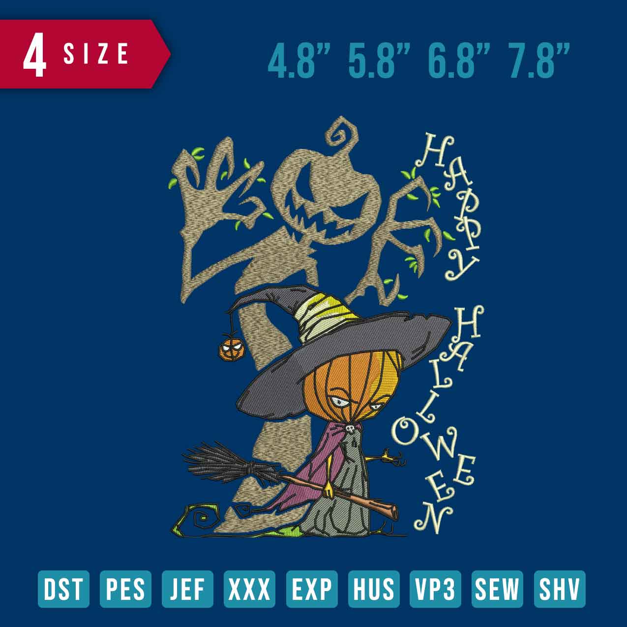 Happy Halloween tree Embroidery design