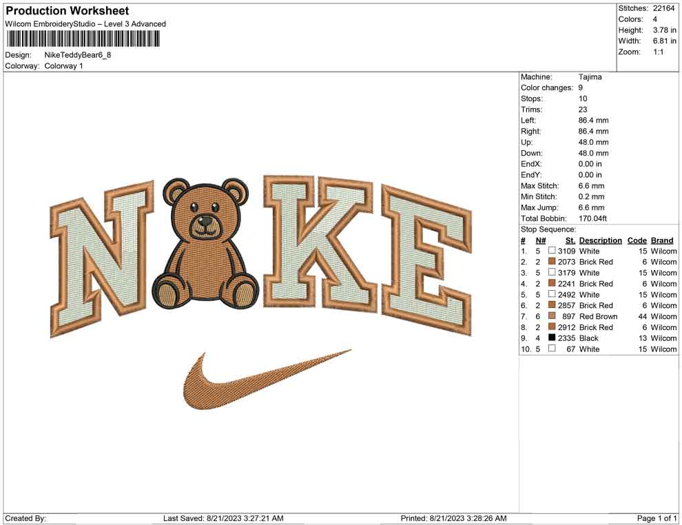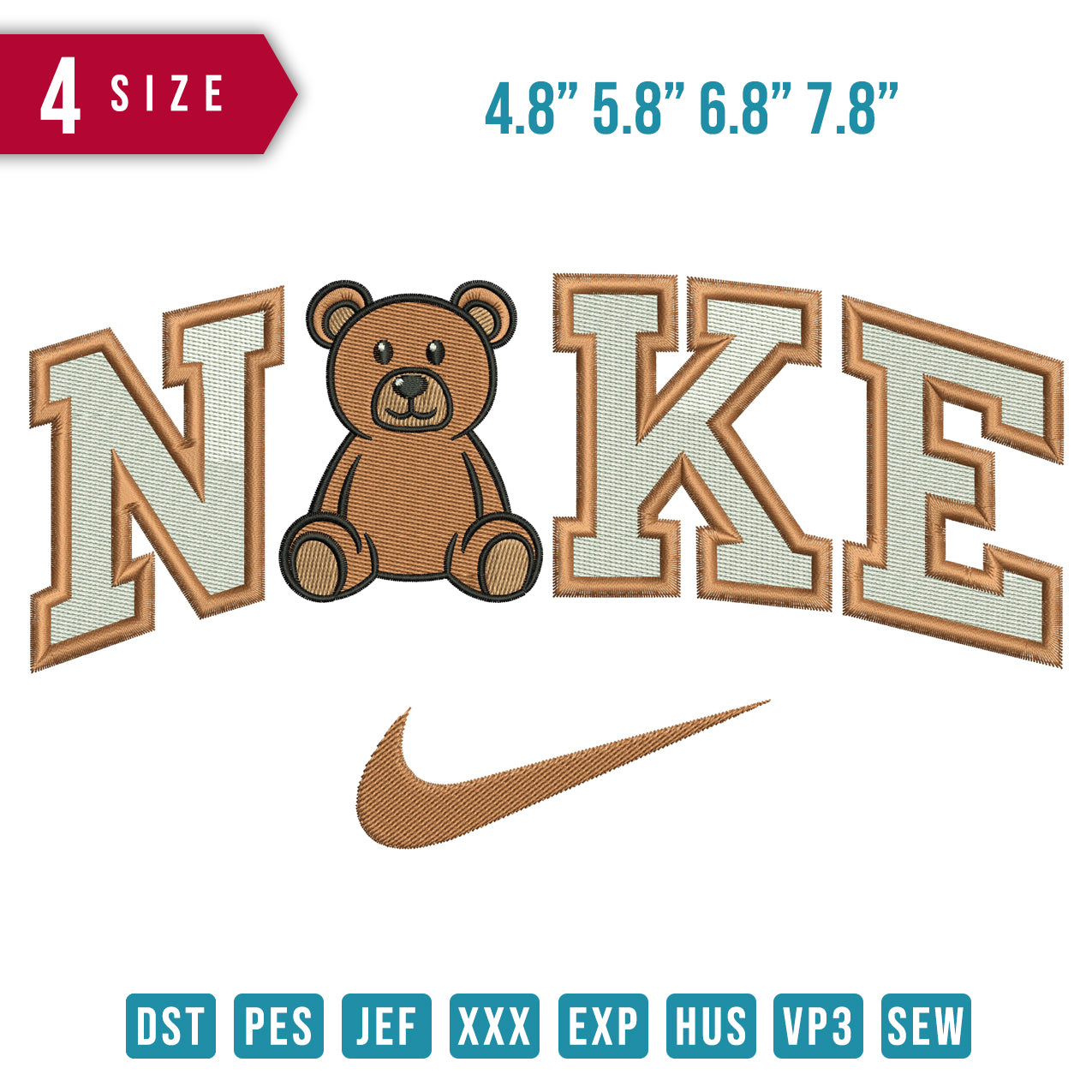 Nike teddy bear embroidery design