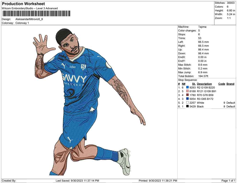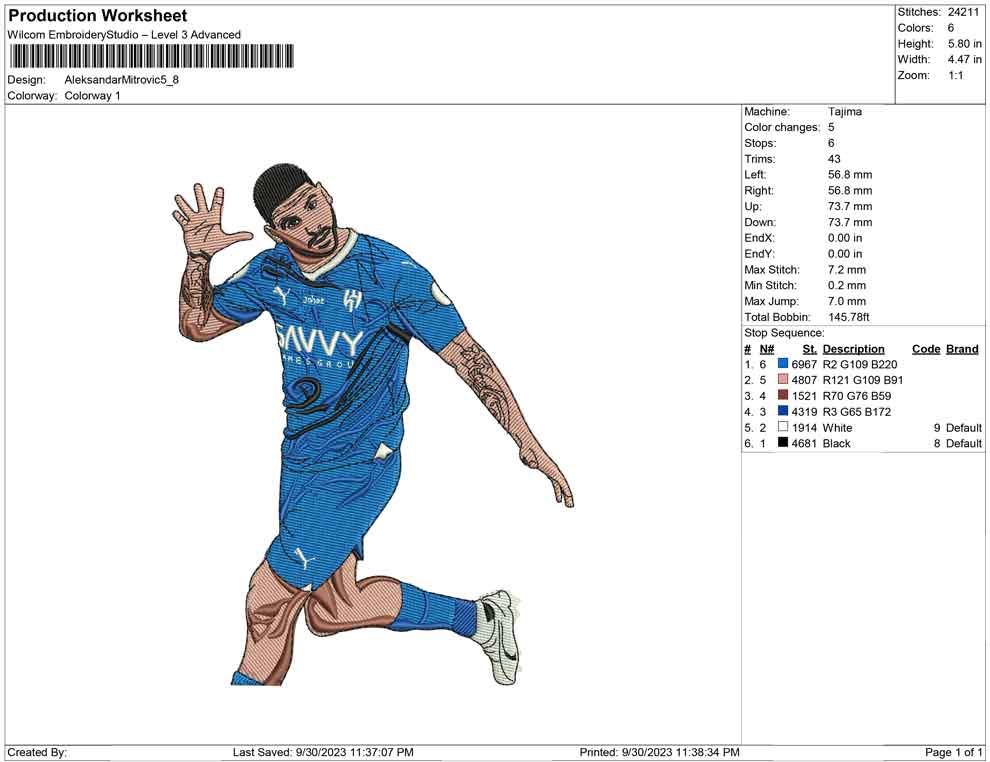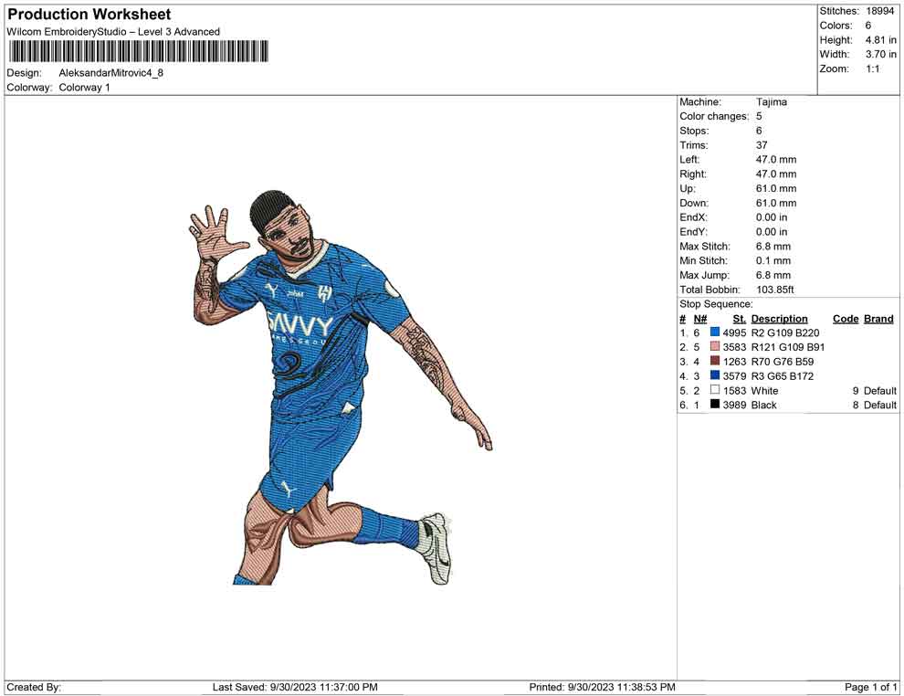 Aleksandar Mitrovic embroidery design