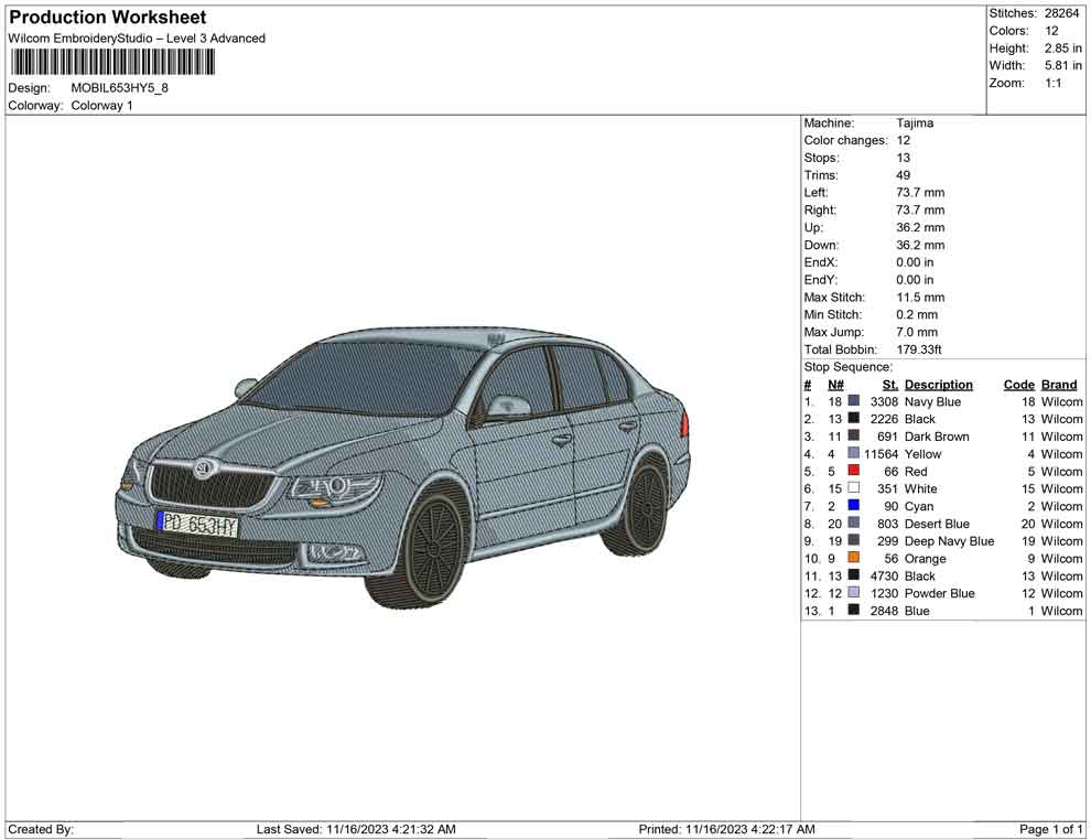 car 653HY embroidery design