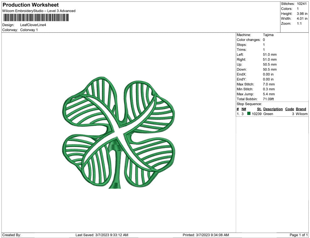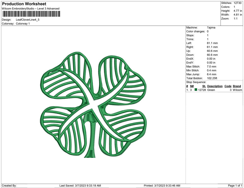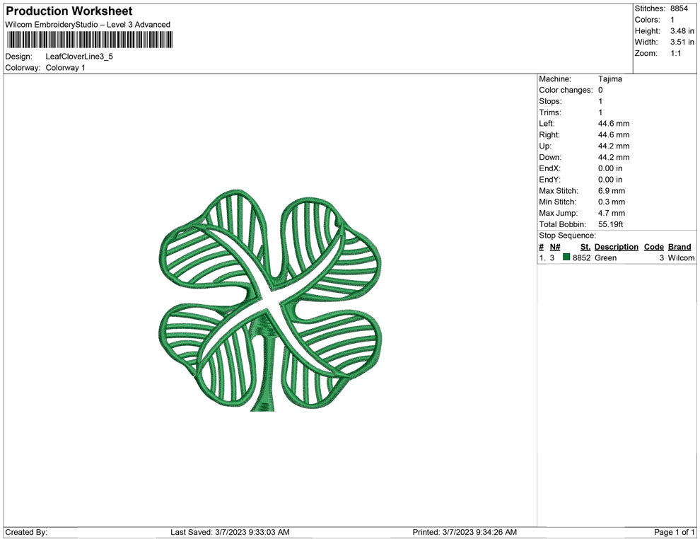 Leaf Clover Line embroidery design
