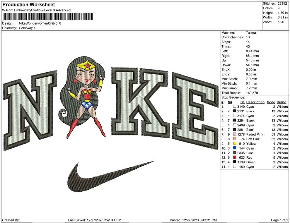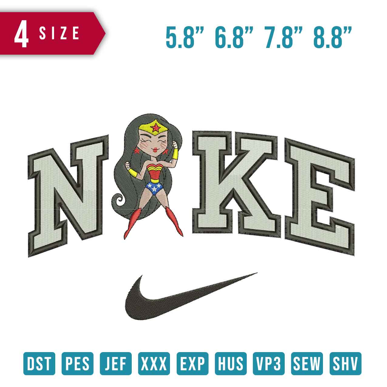 Nike Wonderwoman Chibi embroidery designs