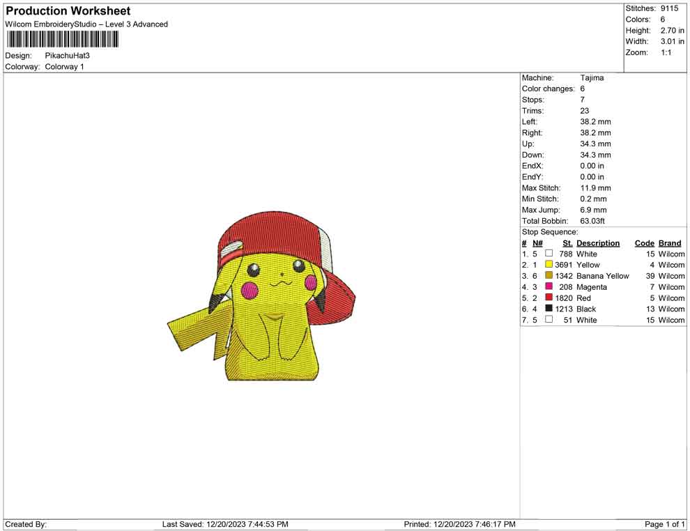Pikachu make hat embroidery design