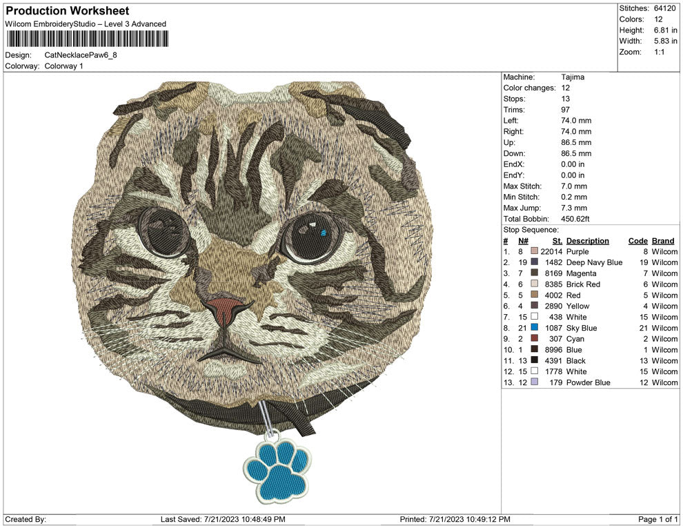 Cat Necklace Paw  embroidery design