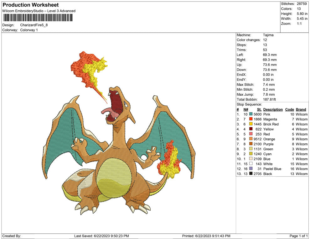 Charized Fire embroidery design