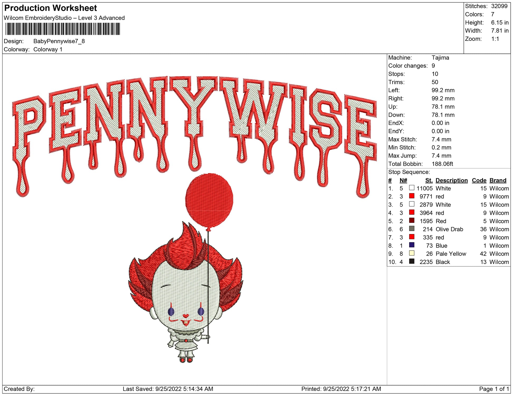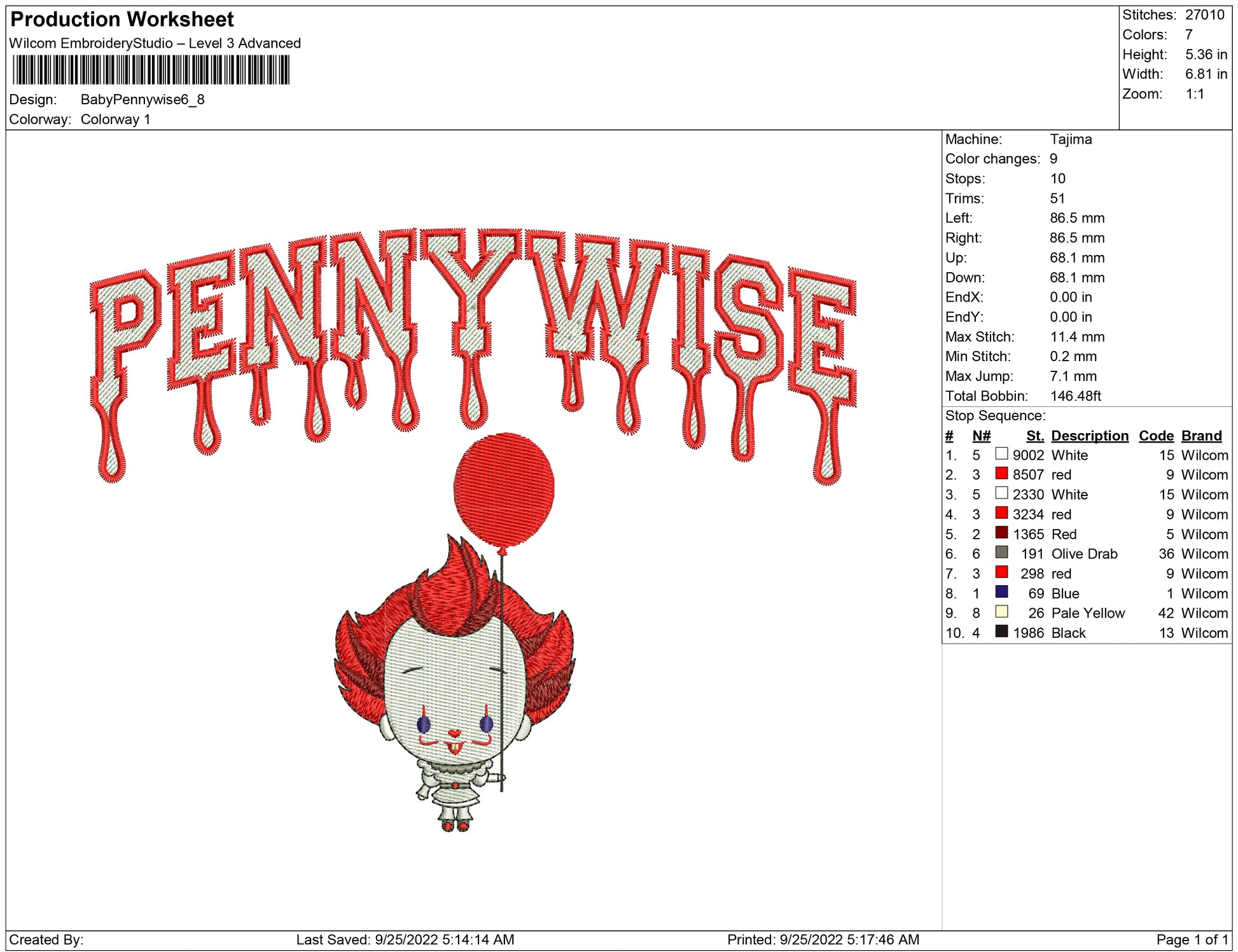Baby Pennywise embroidery design