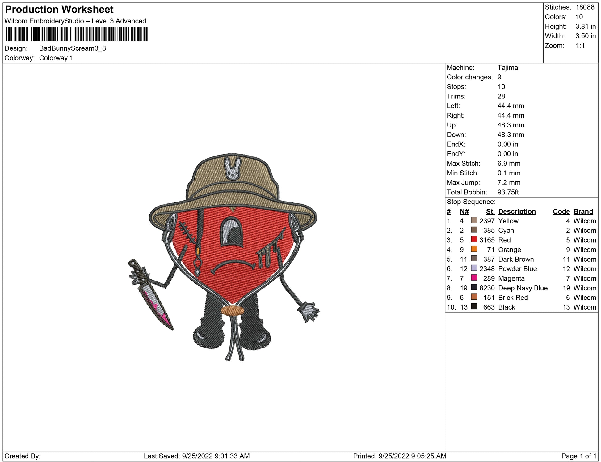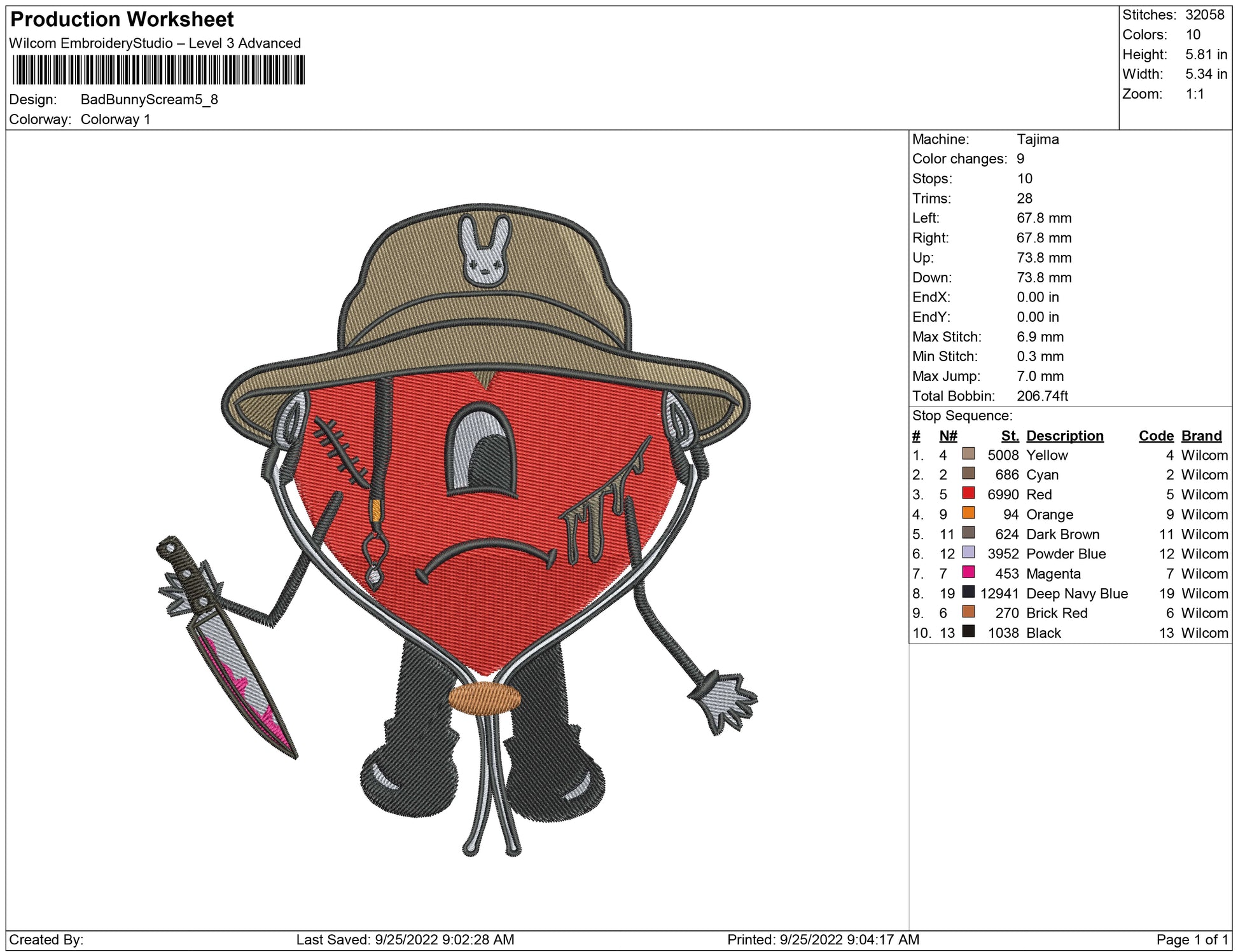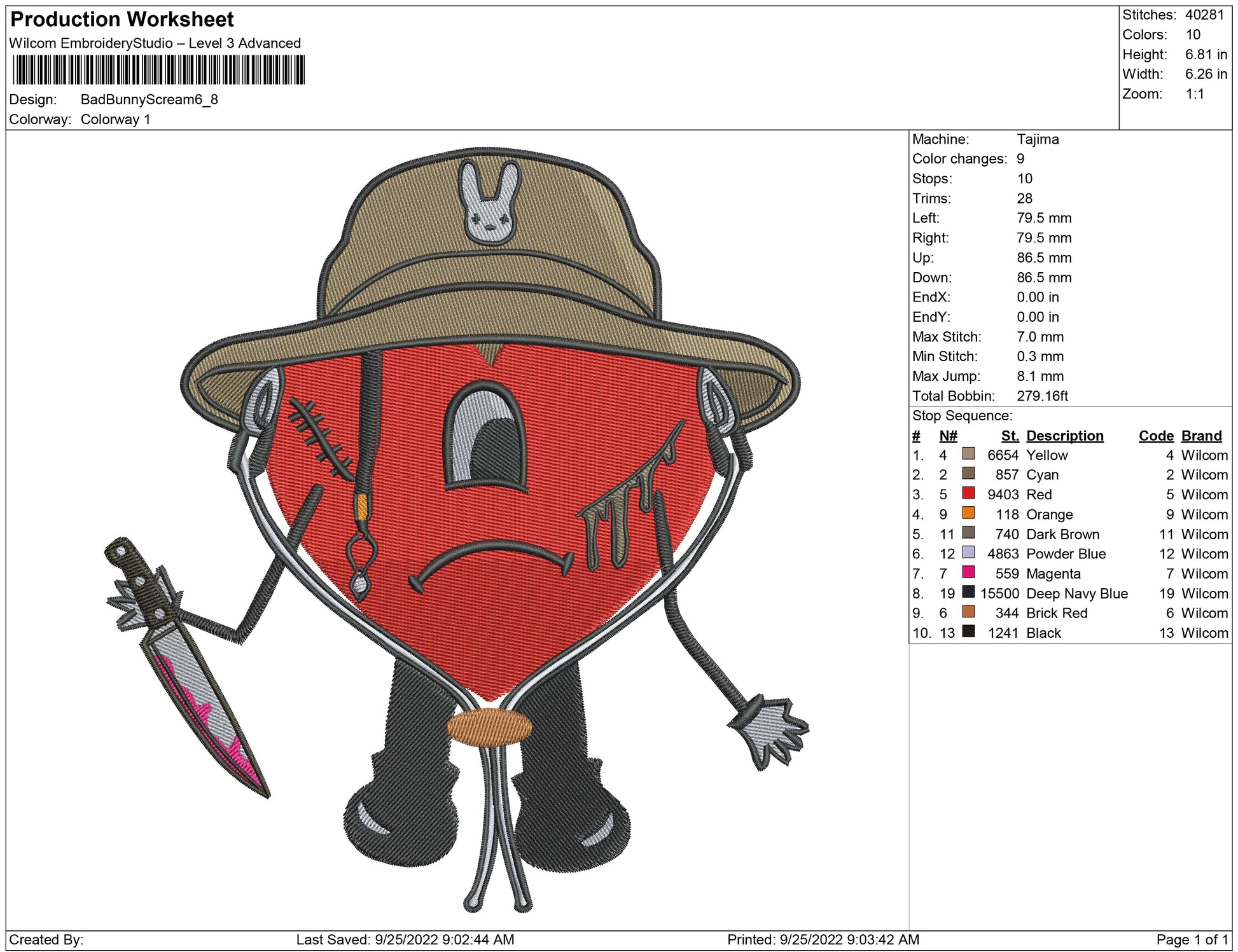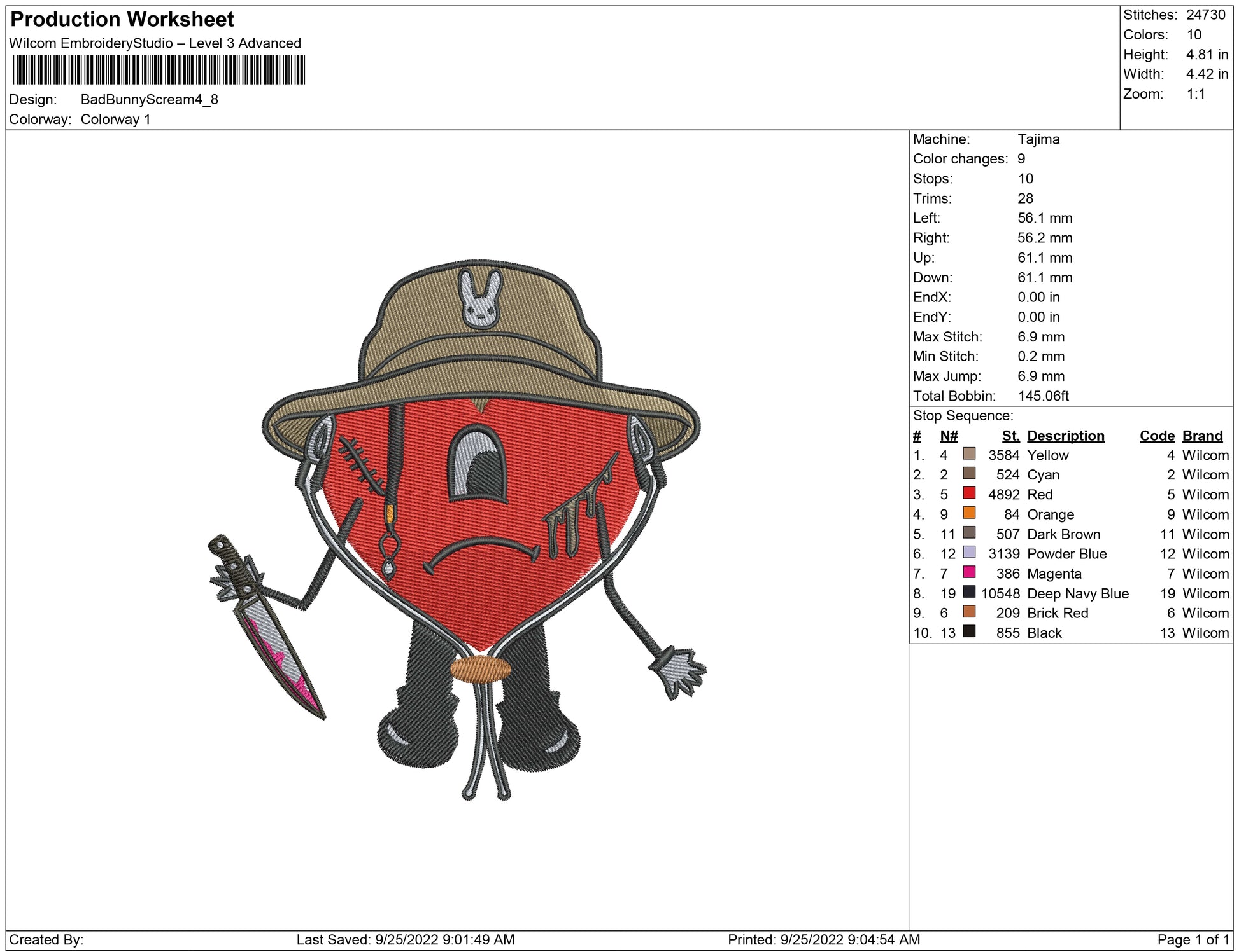Bad Bunny Scream embroidery design