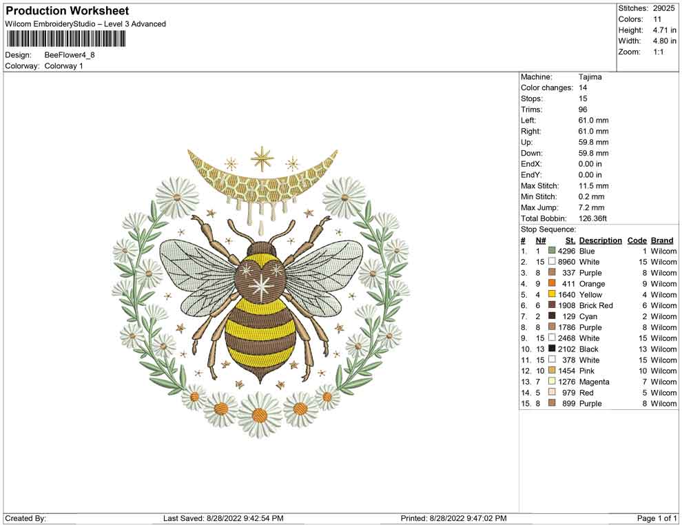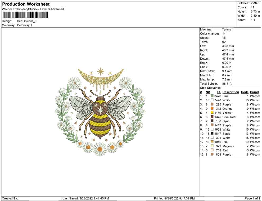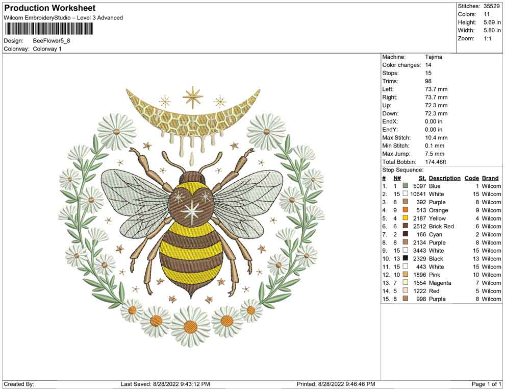 Bee Flowers embroidery design