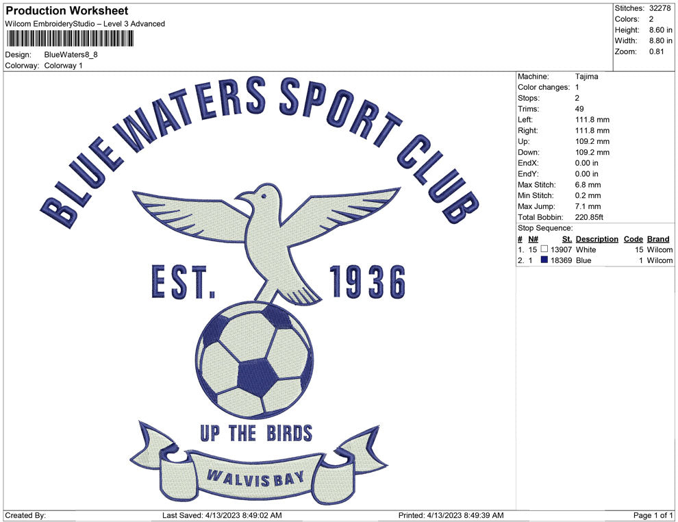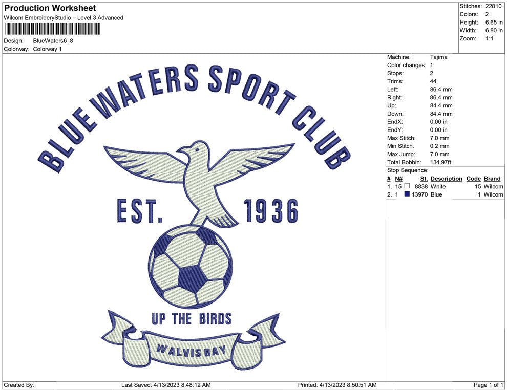 Blue Water embroidery design