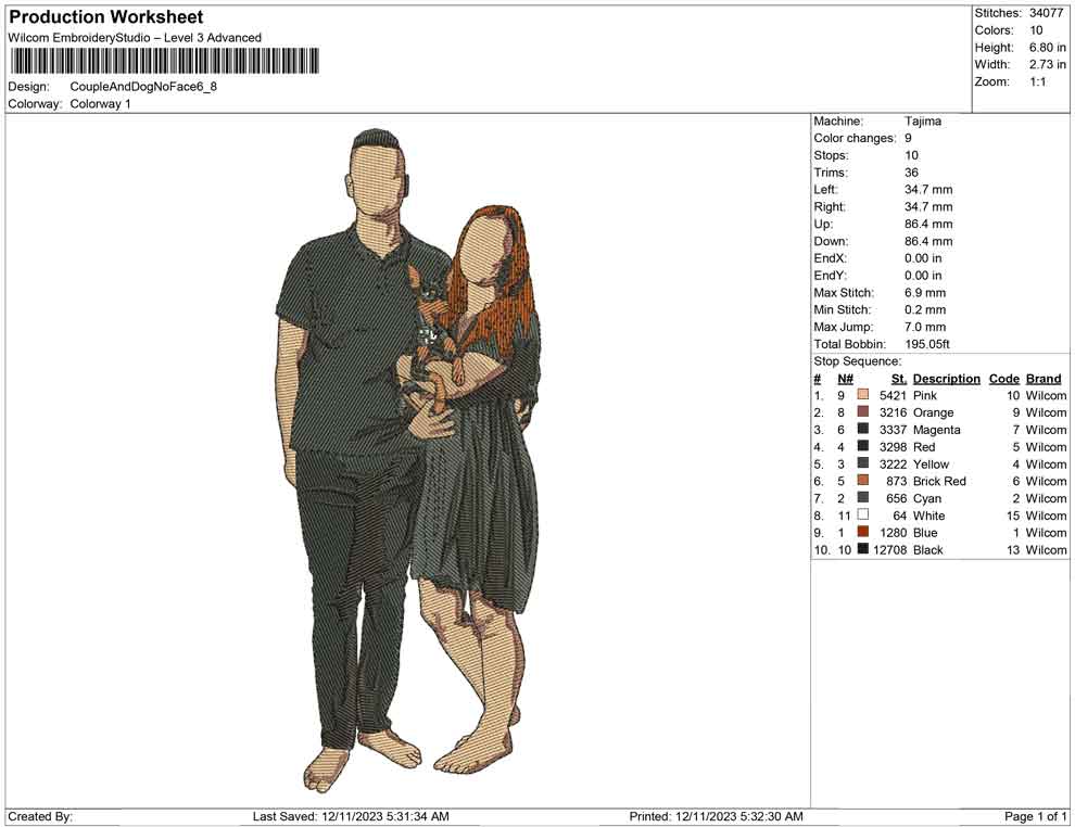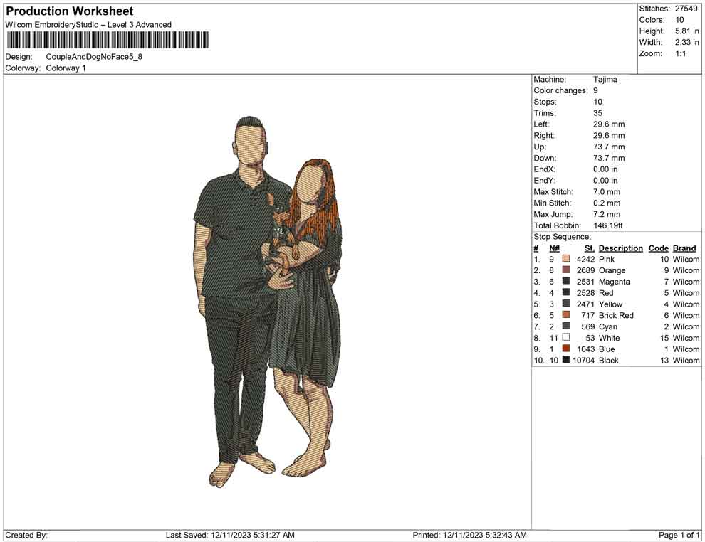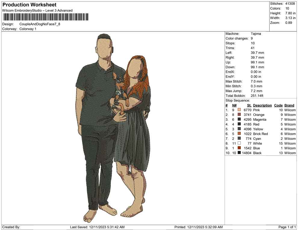 Couple and Dog no face embroidery design
