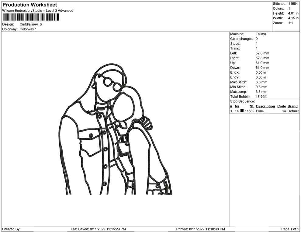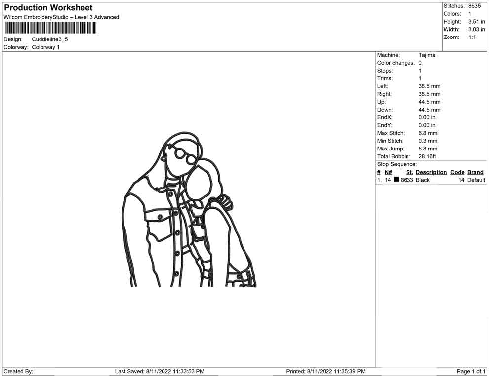 Cuddle line embroidery design