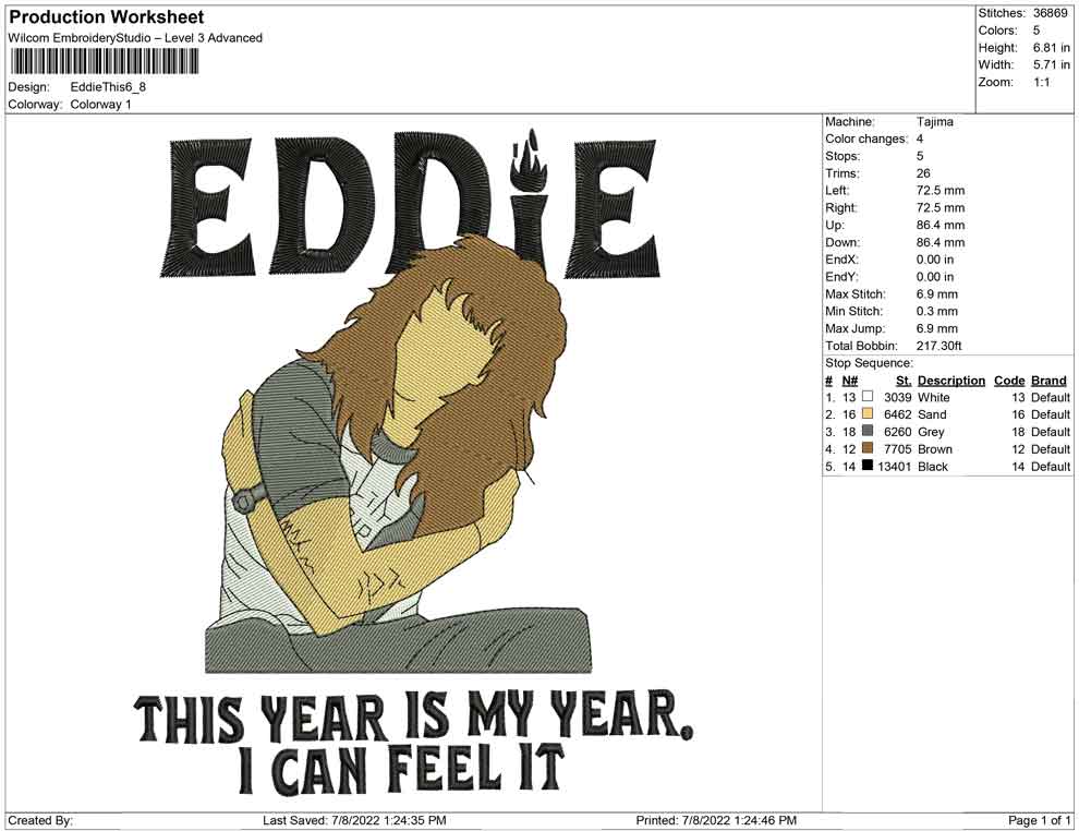 Eddie this year is my year embroidery design