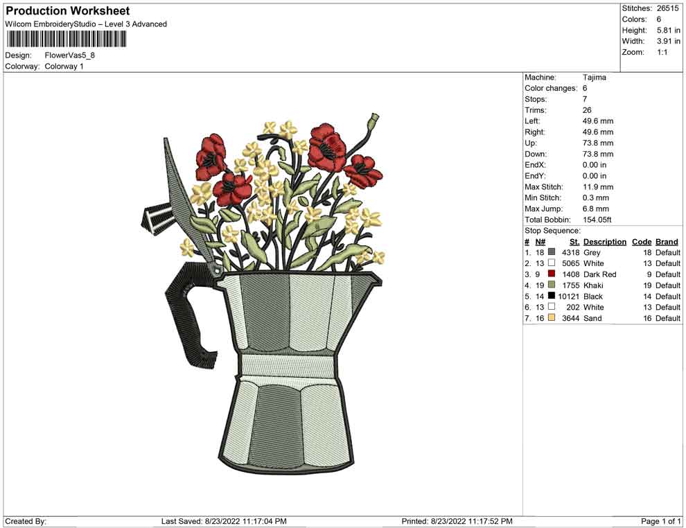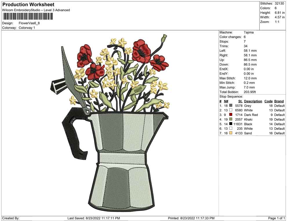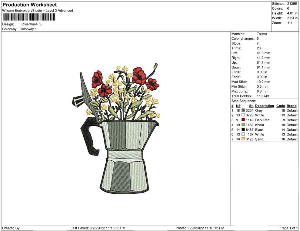 Flower Vas embroidery design