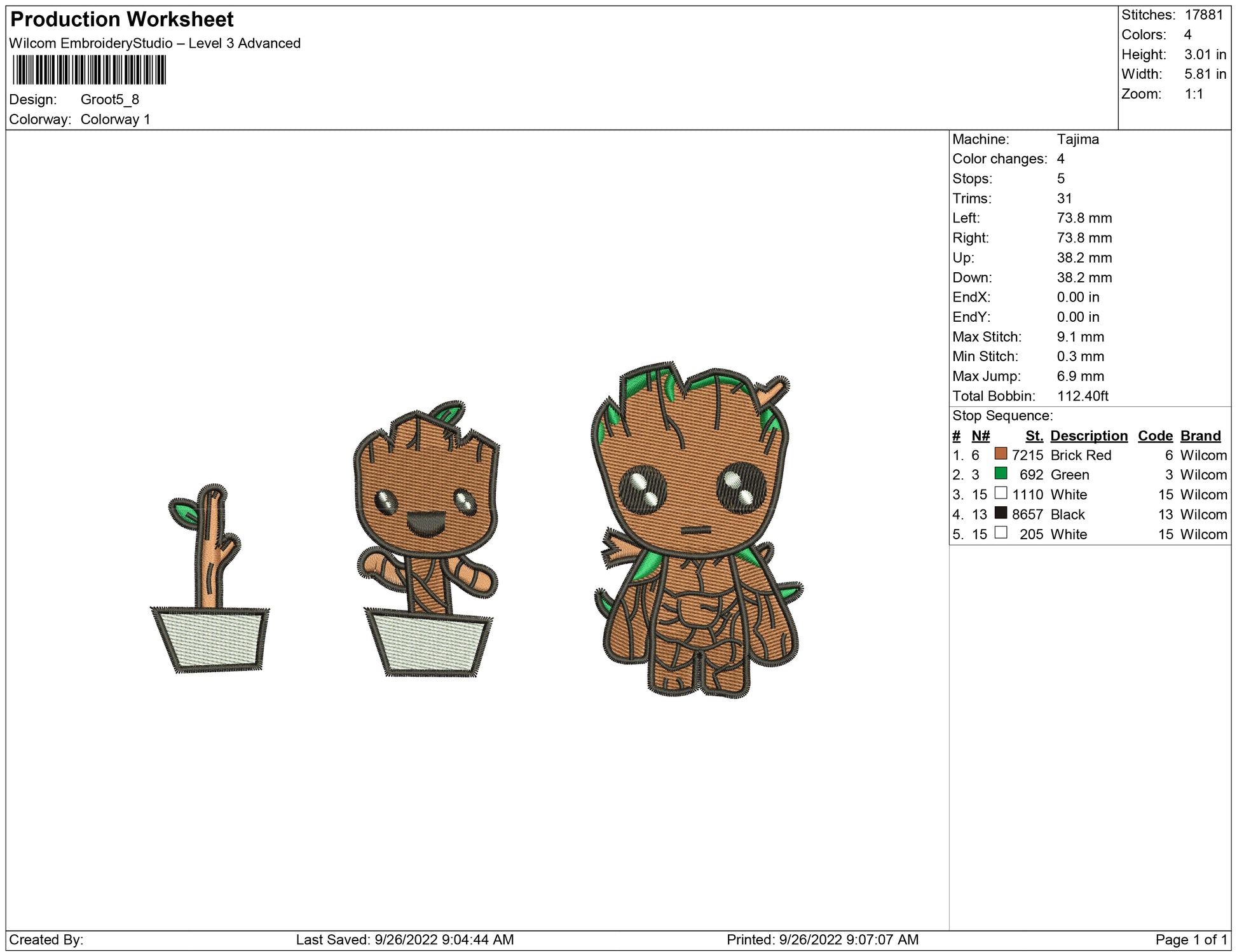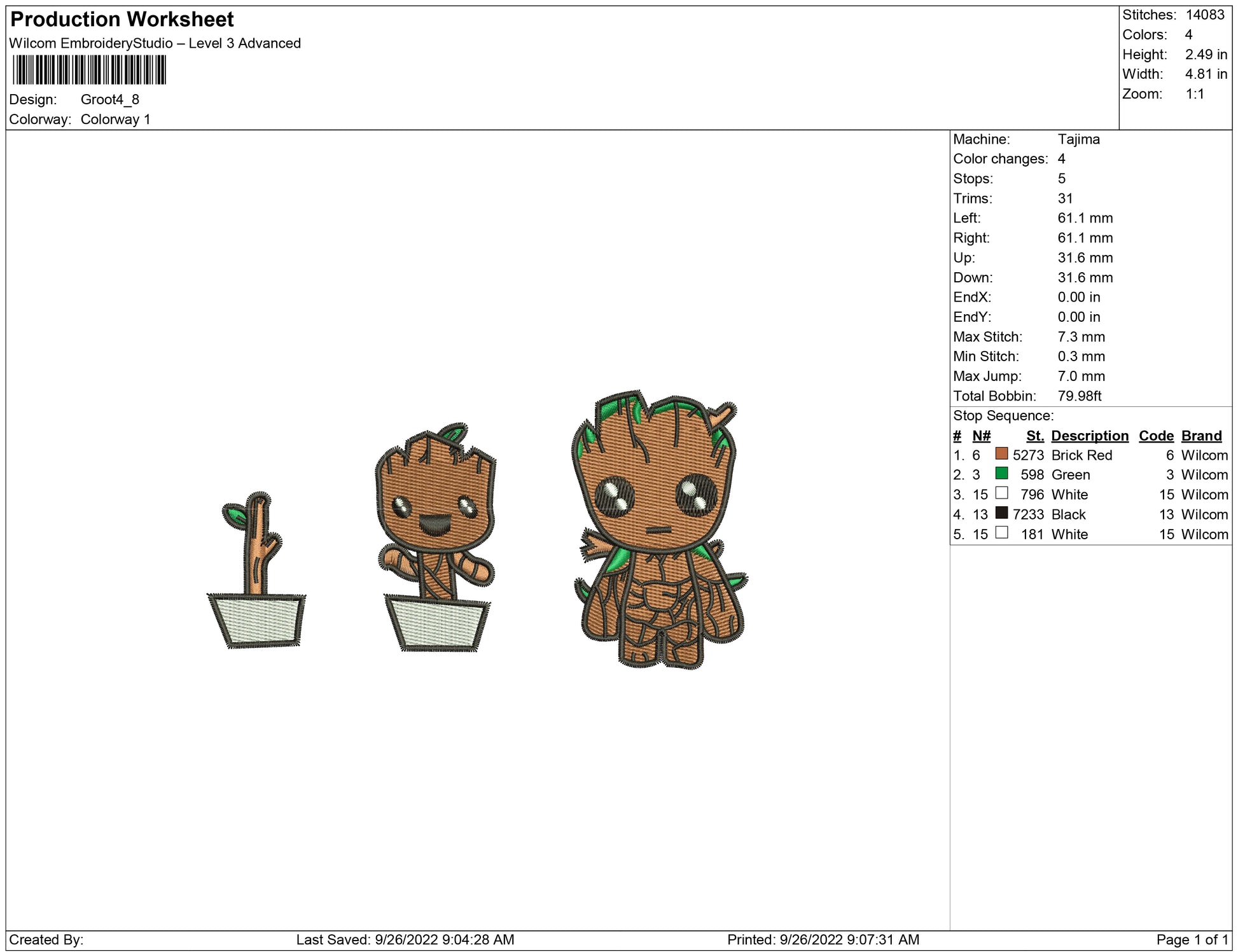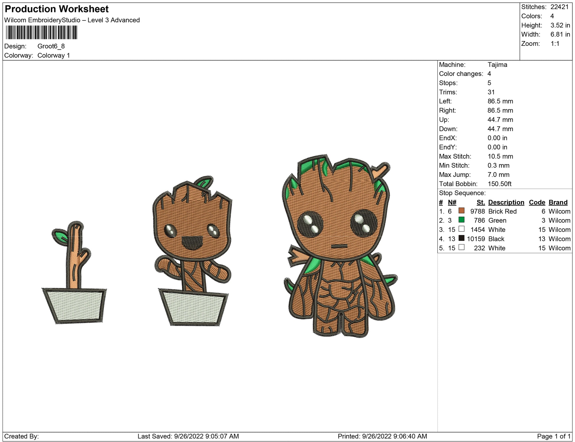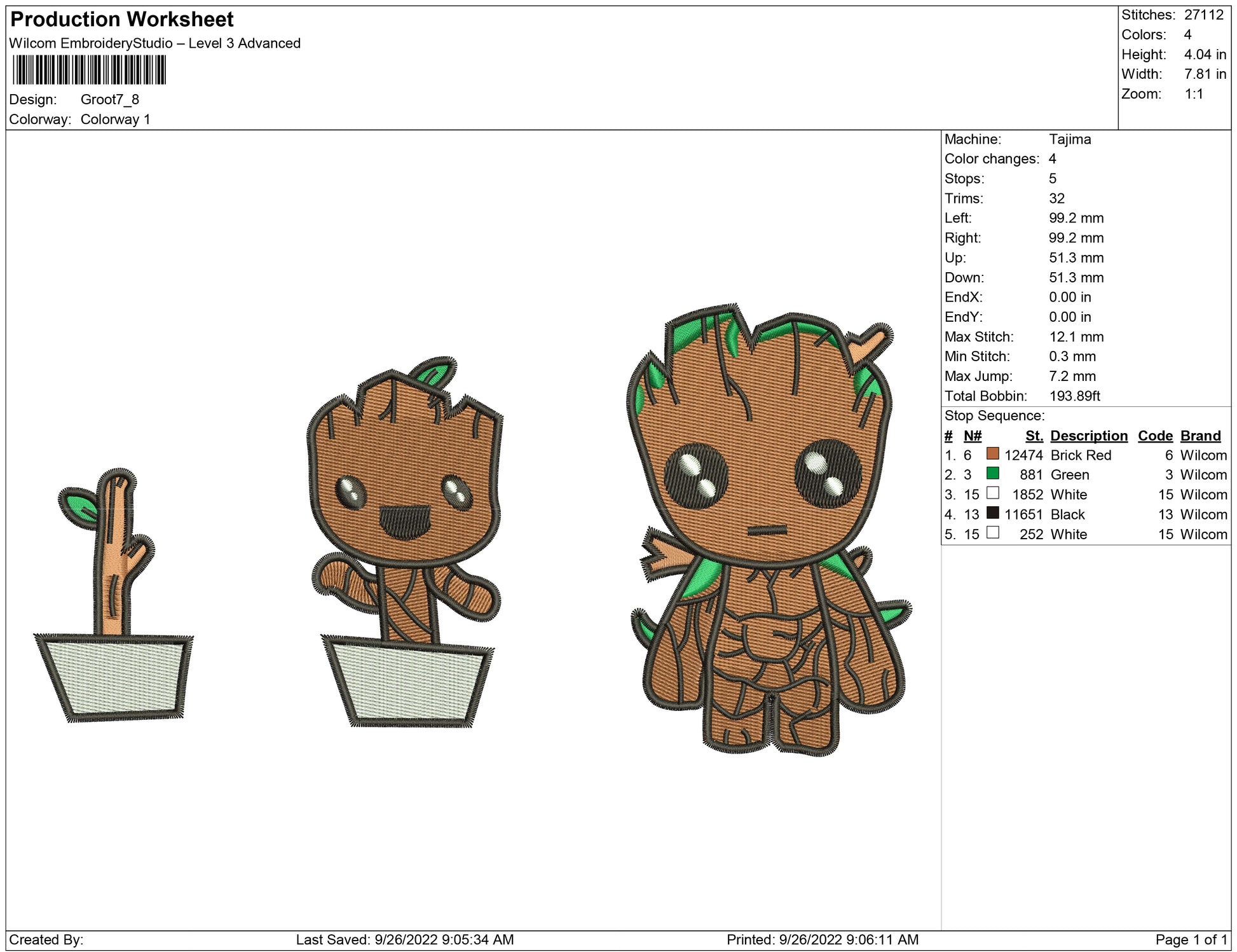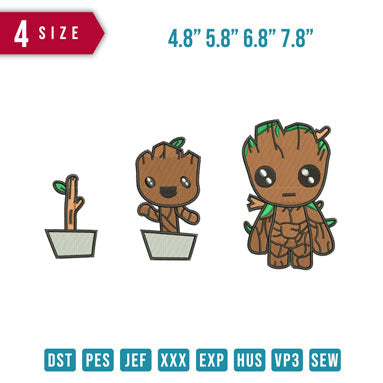 Groot growing embroidery design