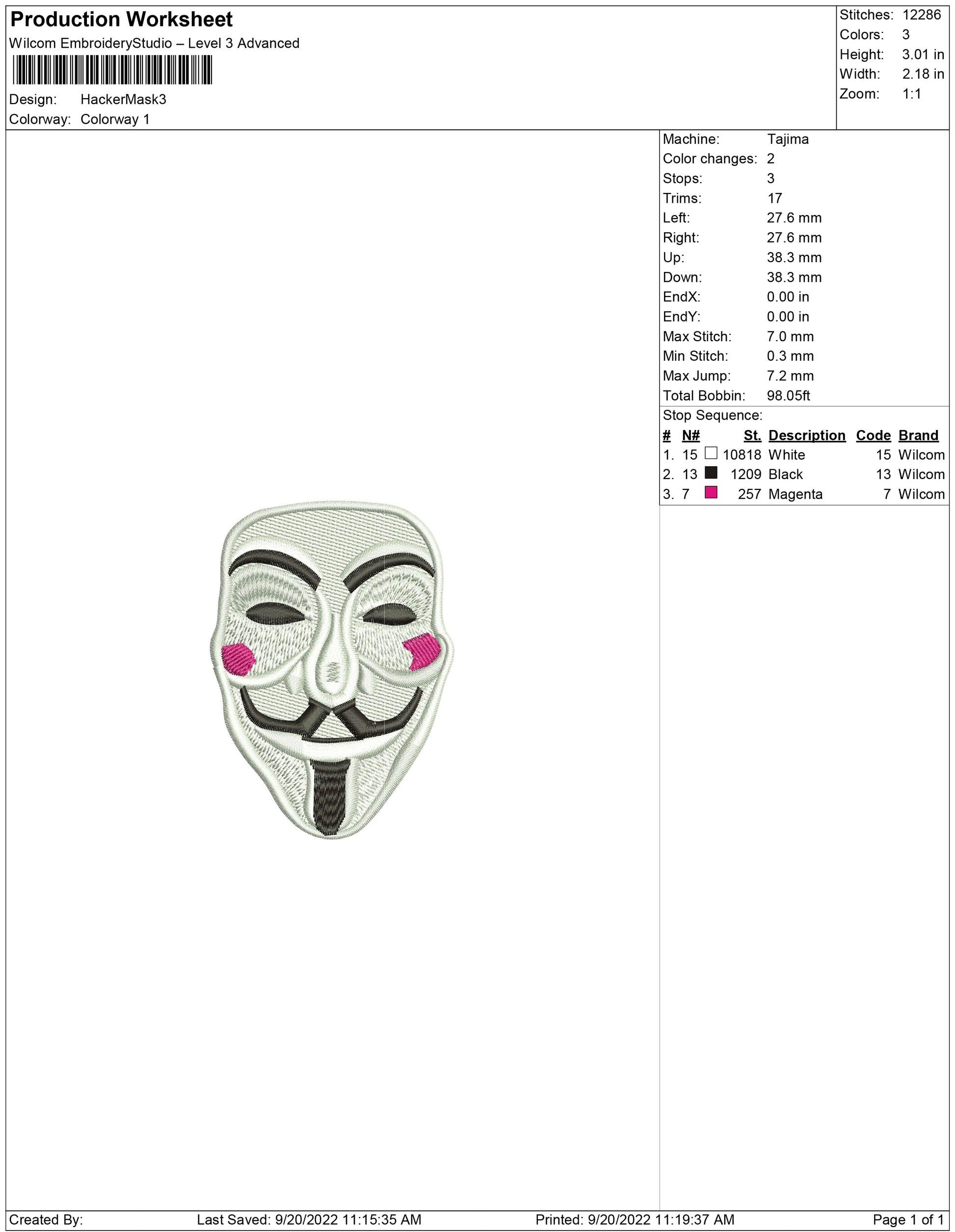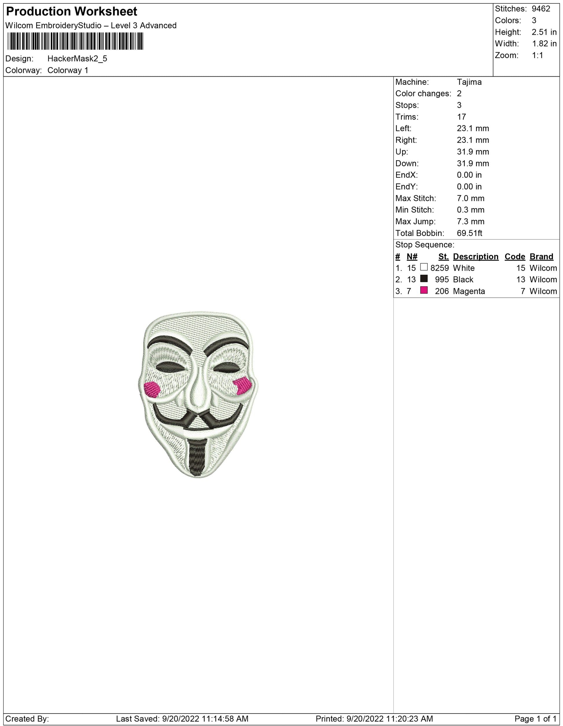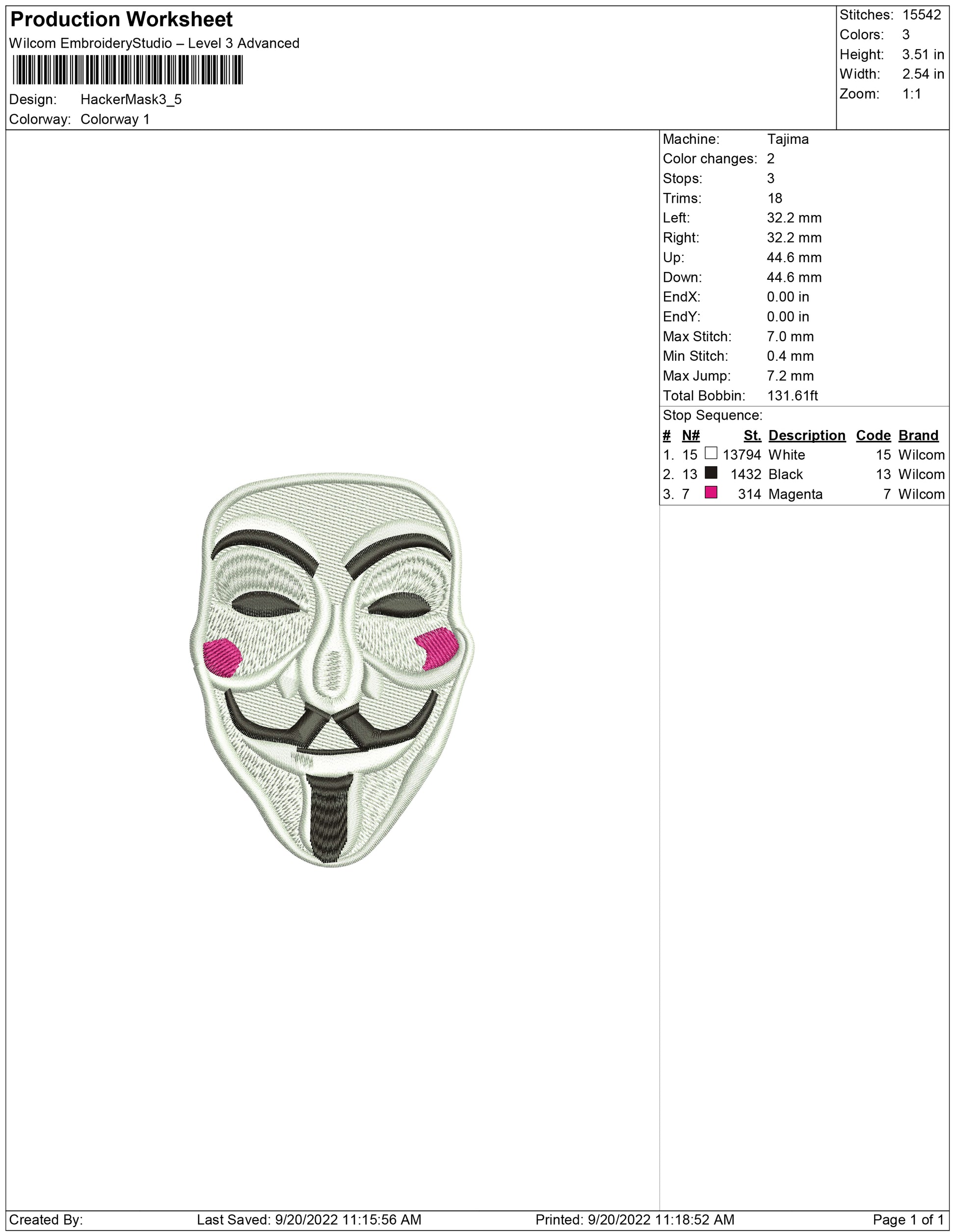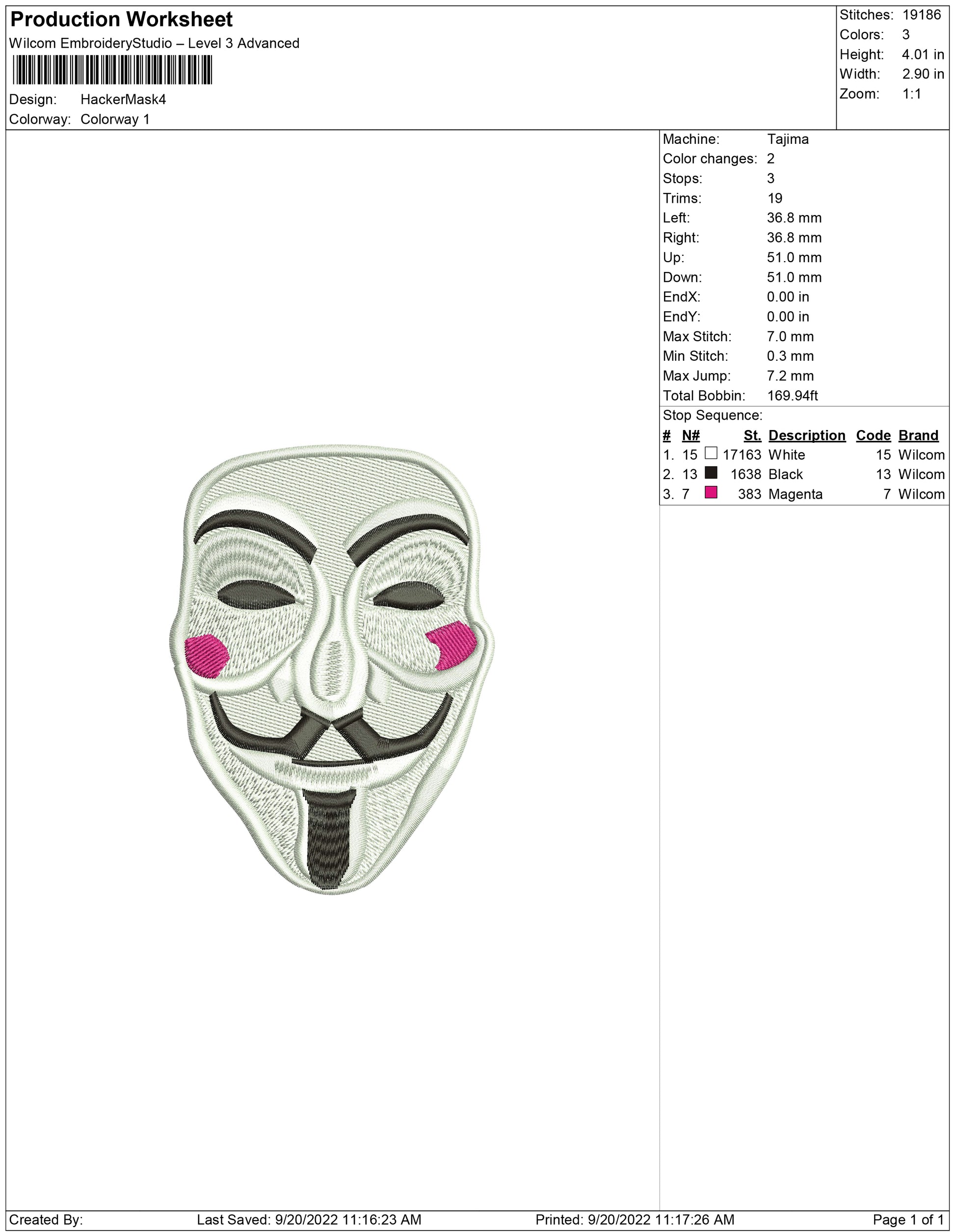 Hacker Mask embroidery design