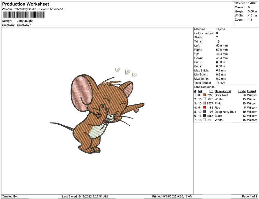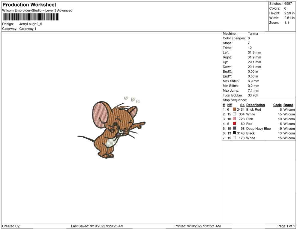 Jerry Laugh embroidery design