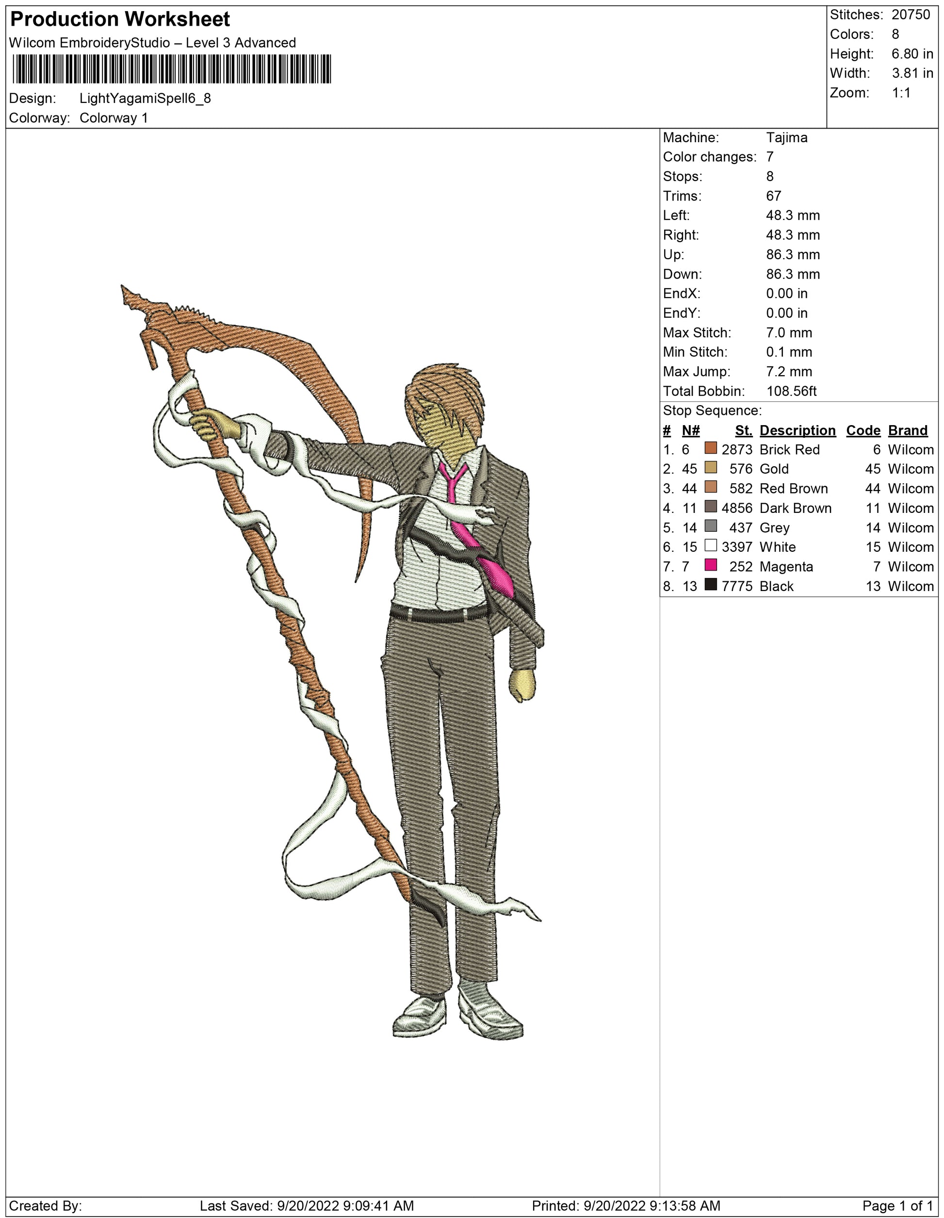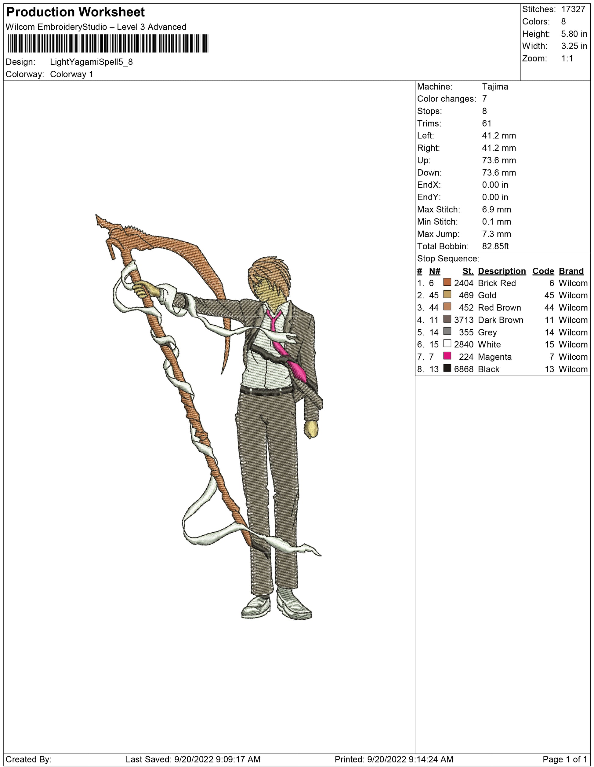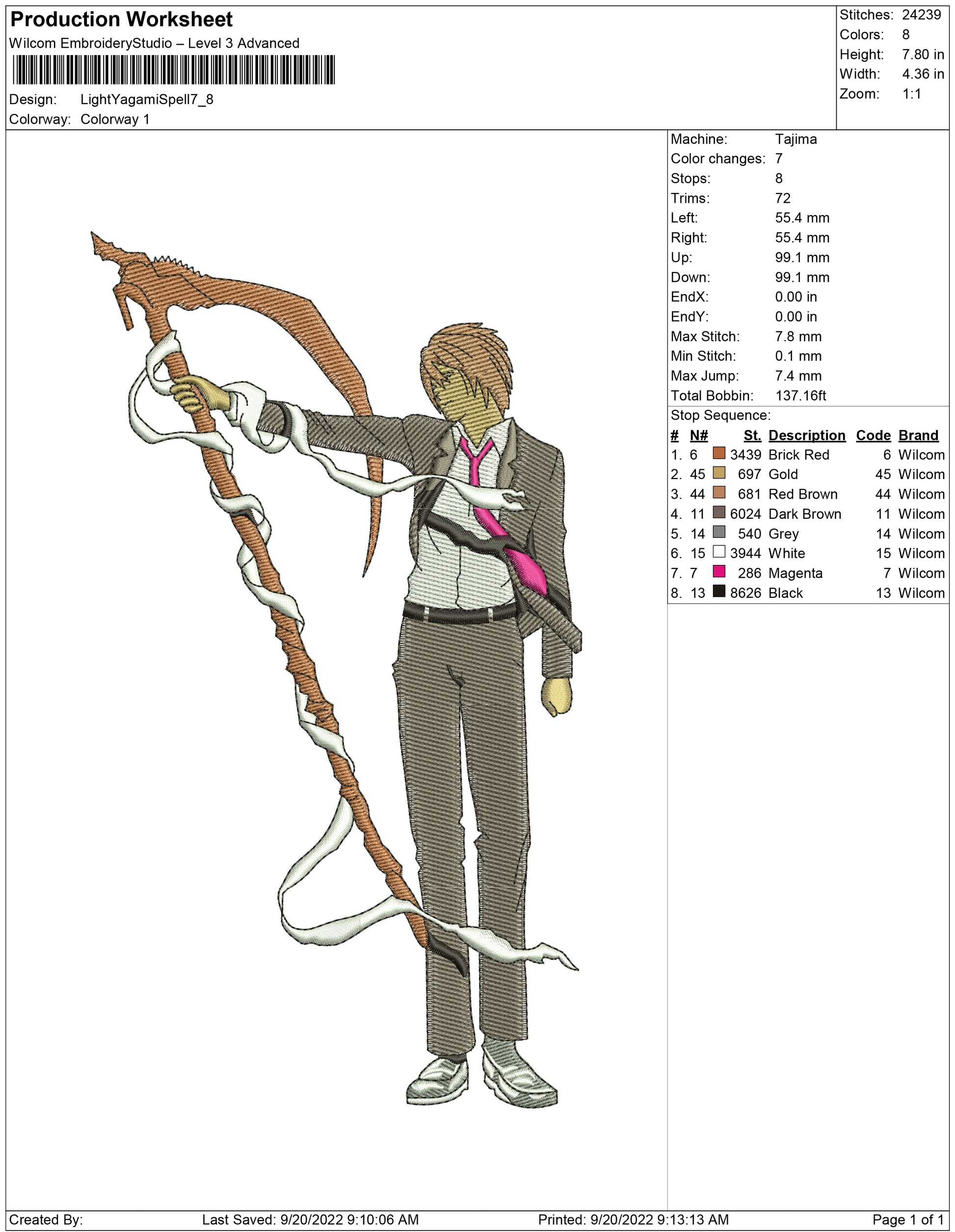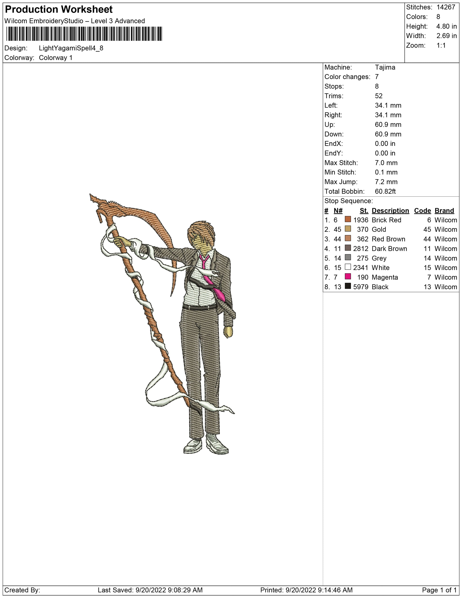 Light Yagami Spell embroidery design