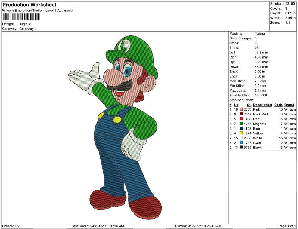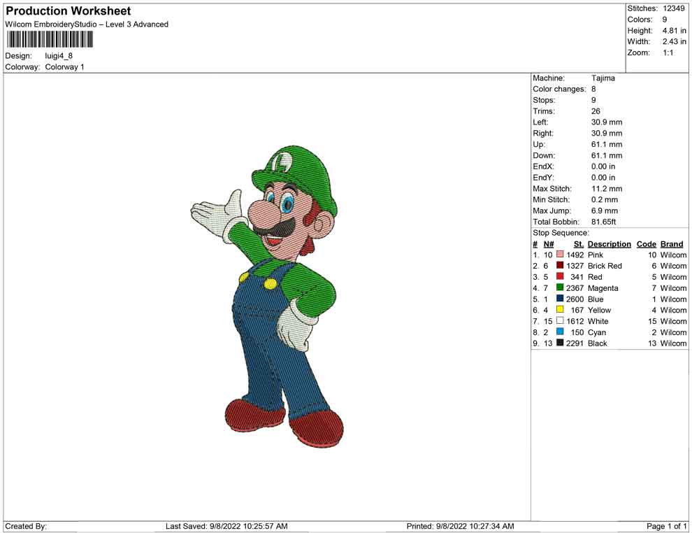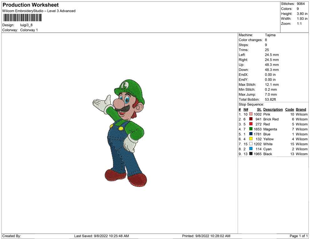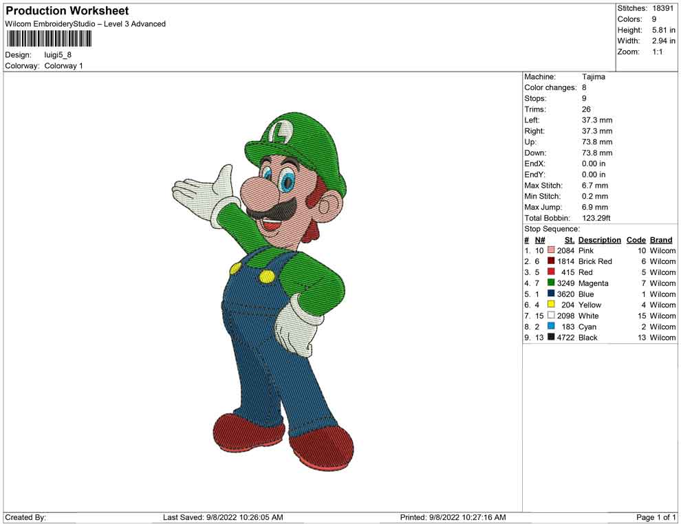 Luigi embroidery design