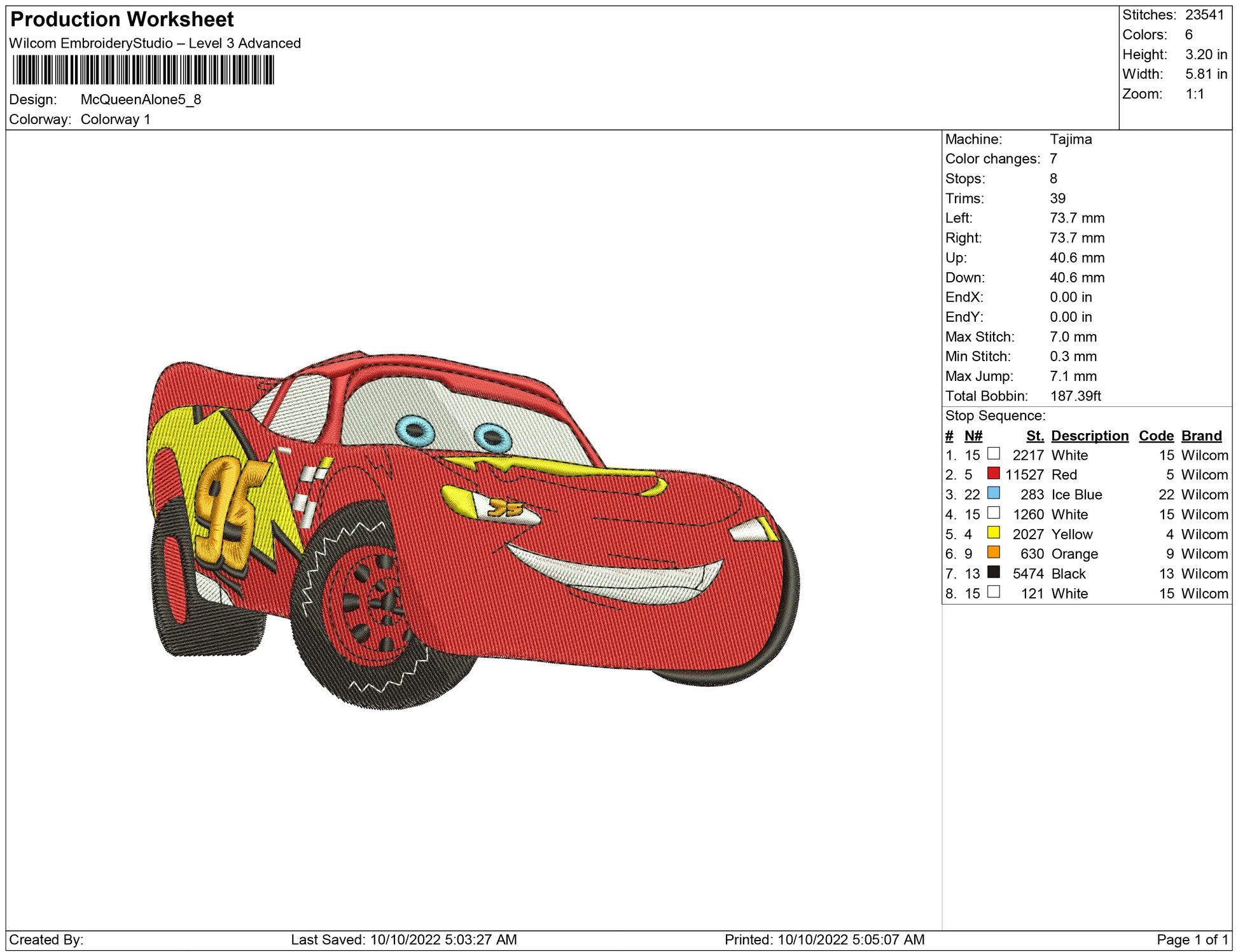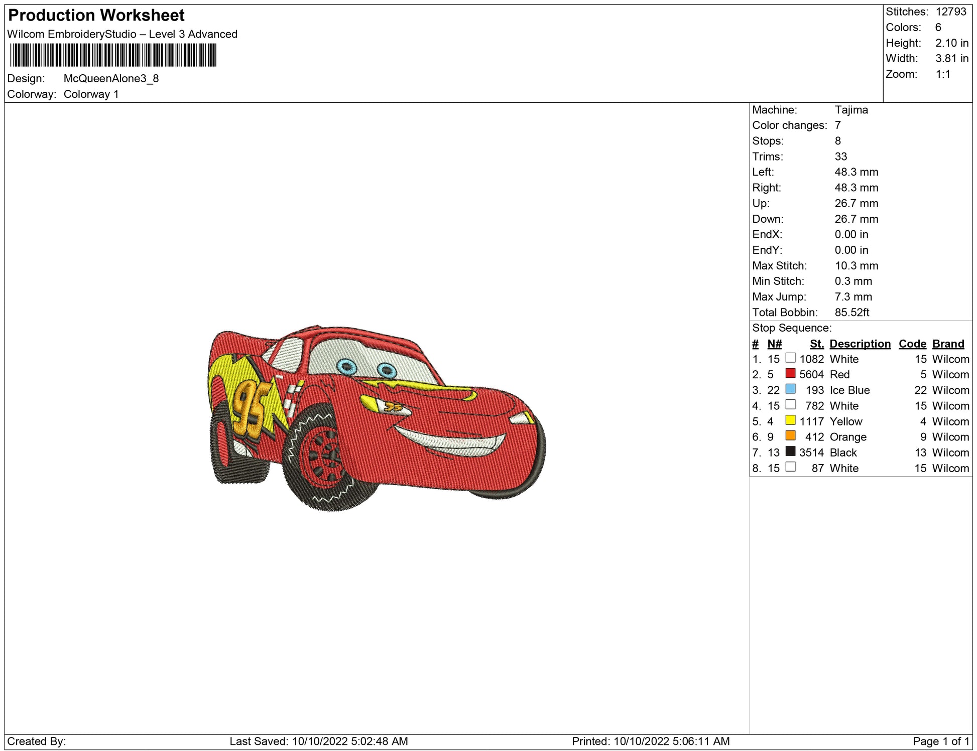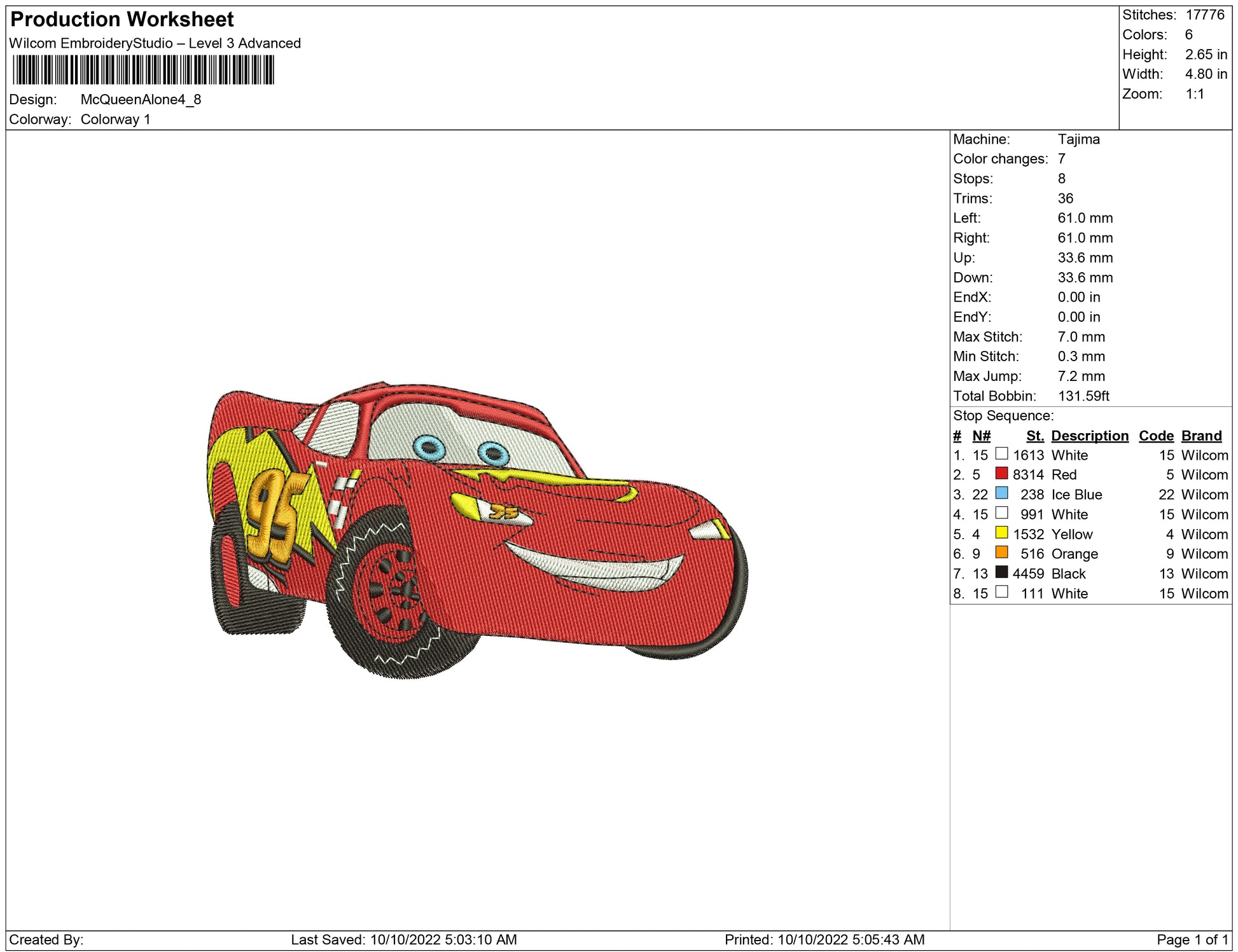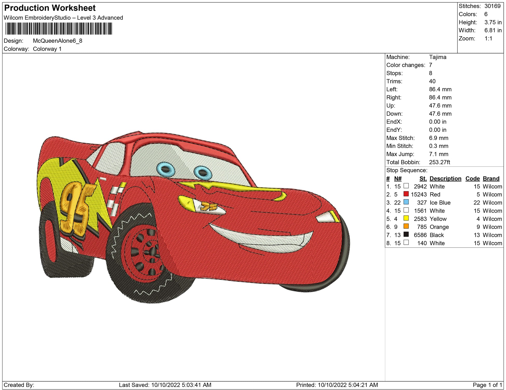 Mc Queen Alone embroidery design