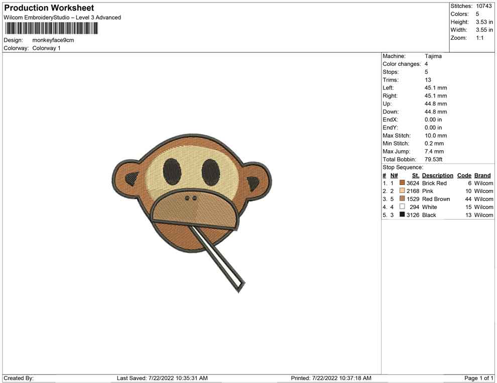 Monkey Face embroidery design
