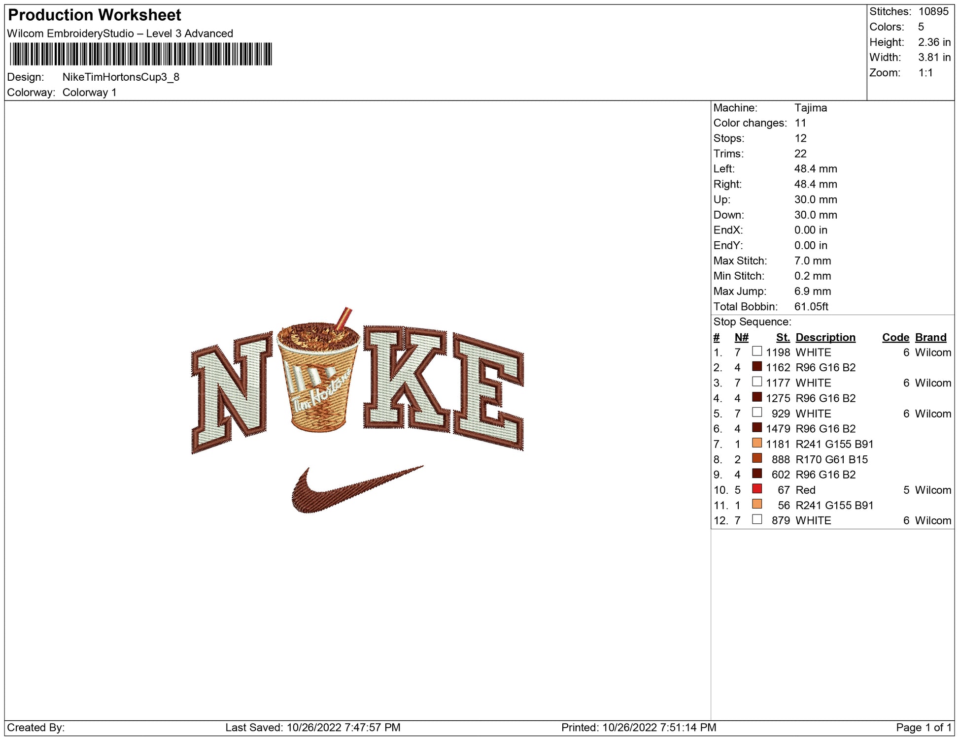 Nike Tim Hortons cup embroidery designs