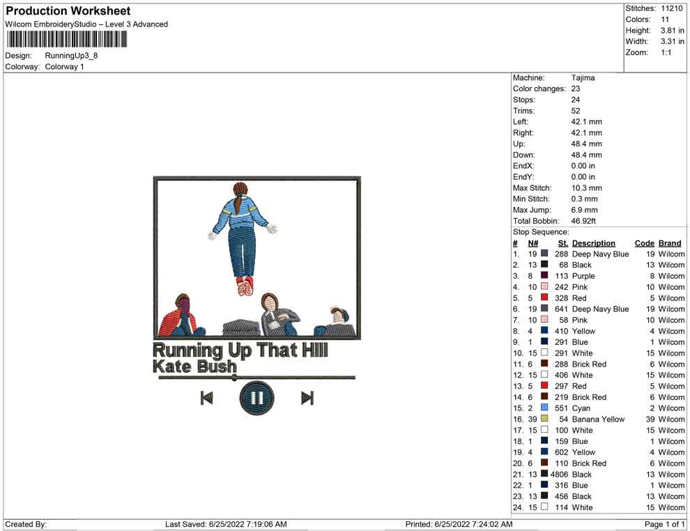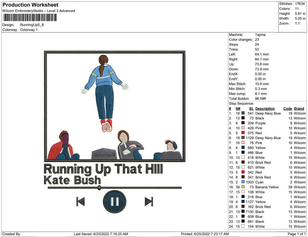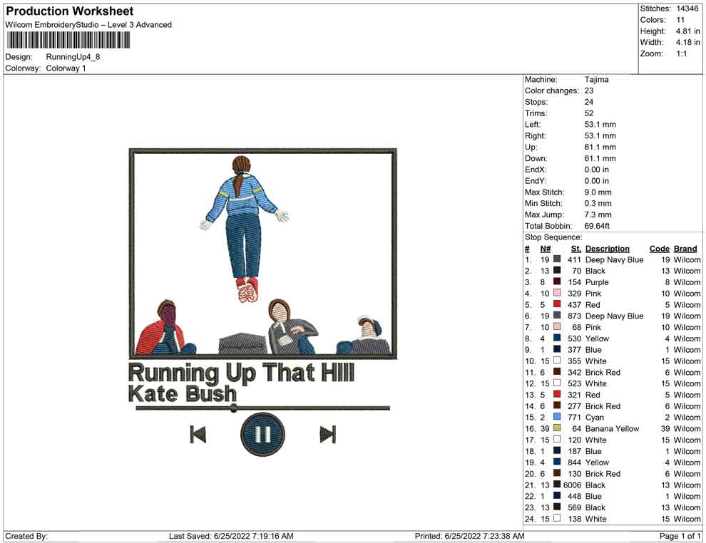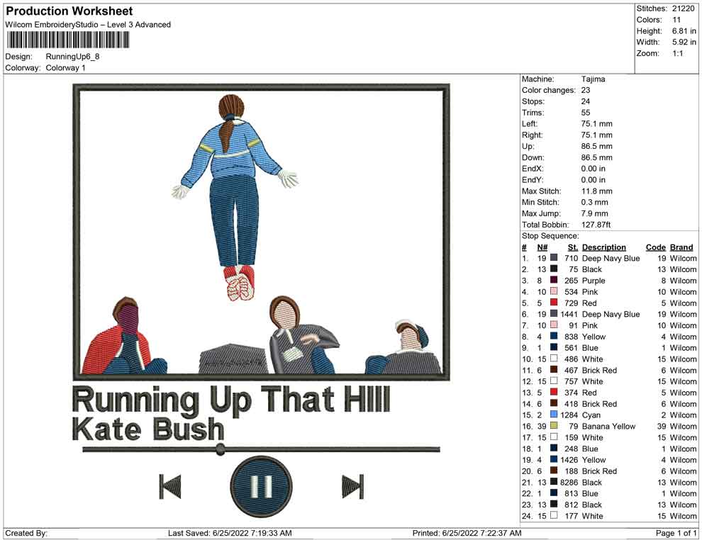 Running up that hlll kate brush ,stranger things embroidery design