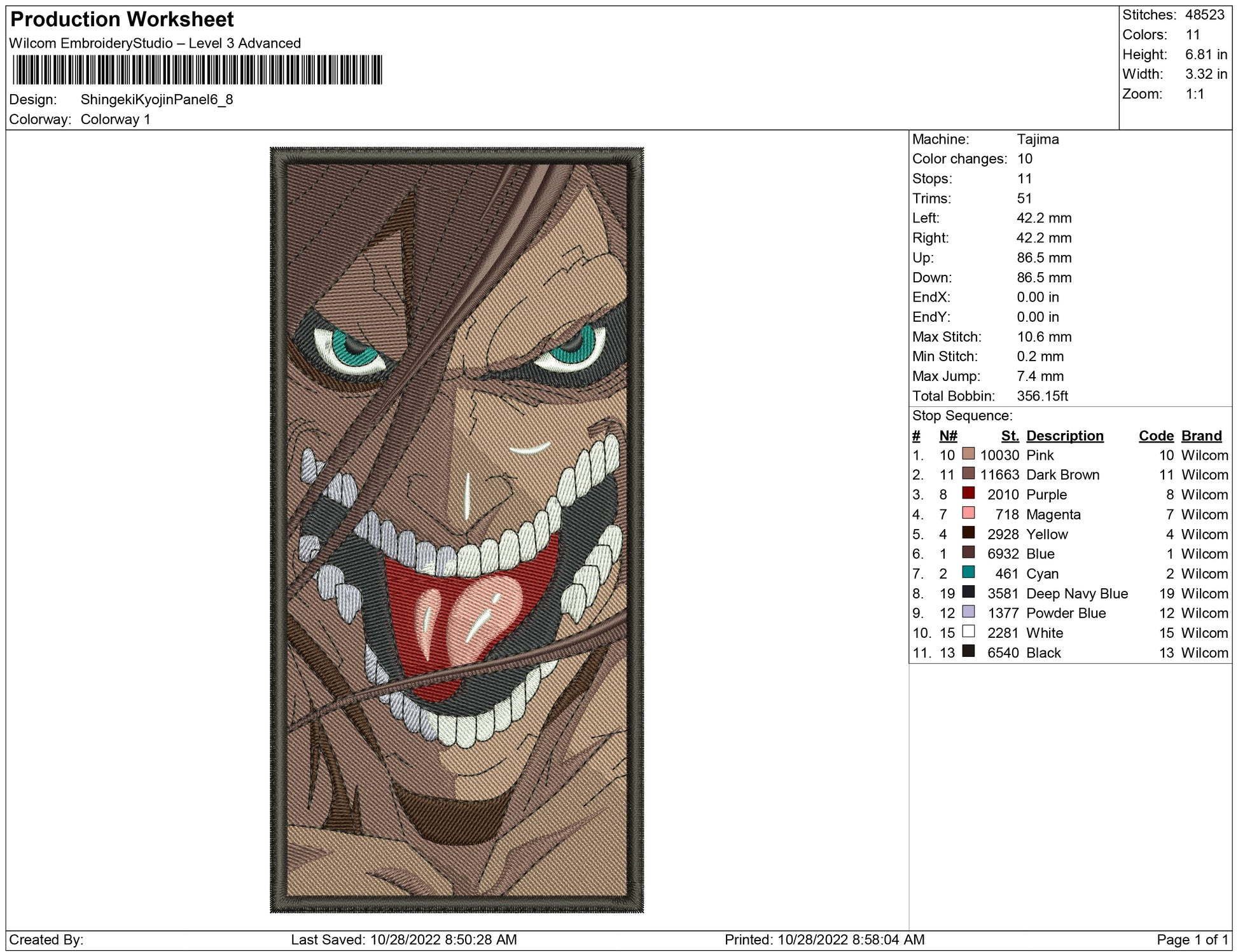 Shingeki Kyojin Panel embroidery design