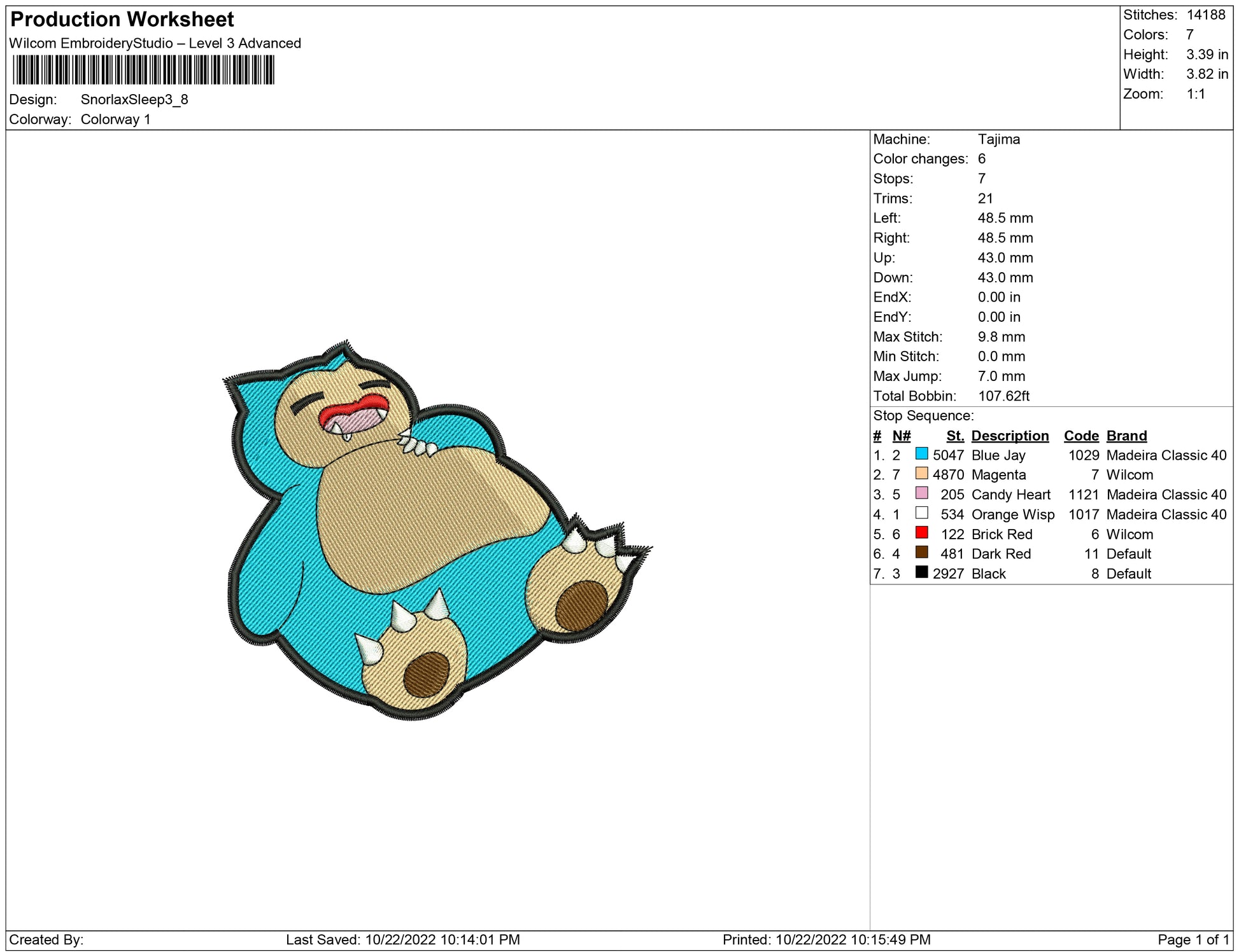 Snorlax Sleep embroidery design