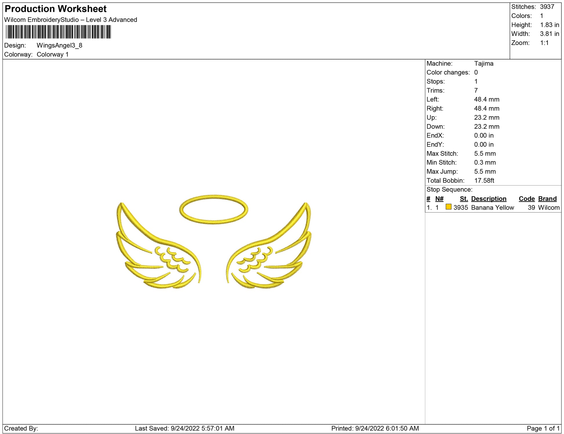 Wings angel embroidery design