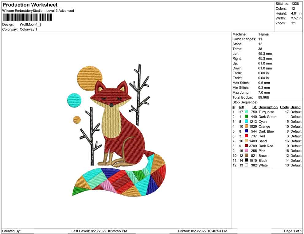 Wolf Moon Polygon embroidery design