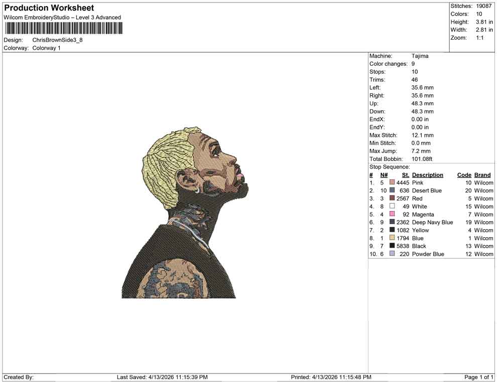 Chris Brown Side embroidery design