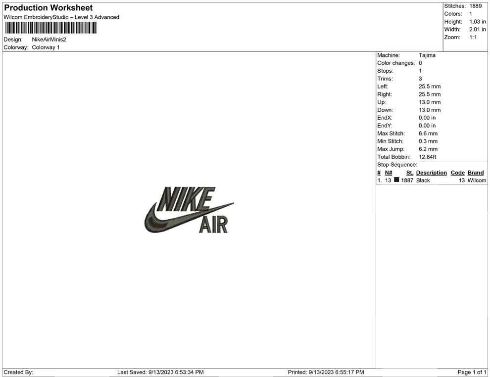 Air Nike minis embroidery design