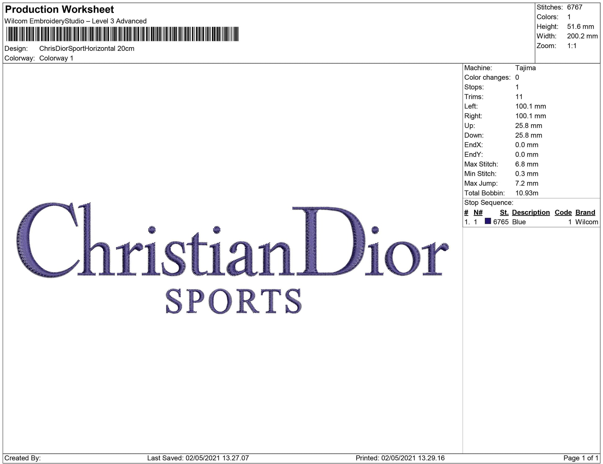 크리스챤 디올 스포츠 가로 자수 디자인