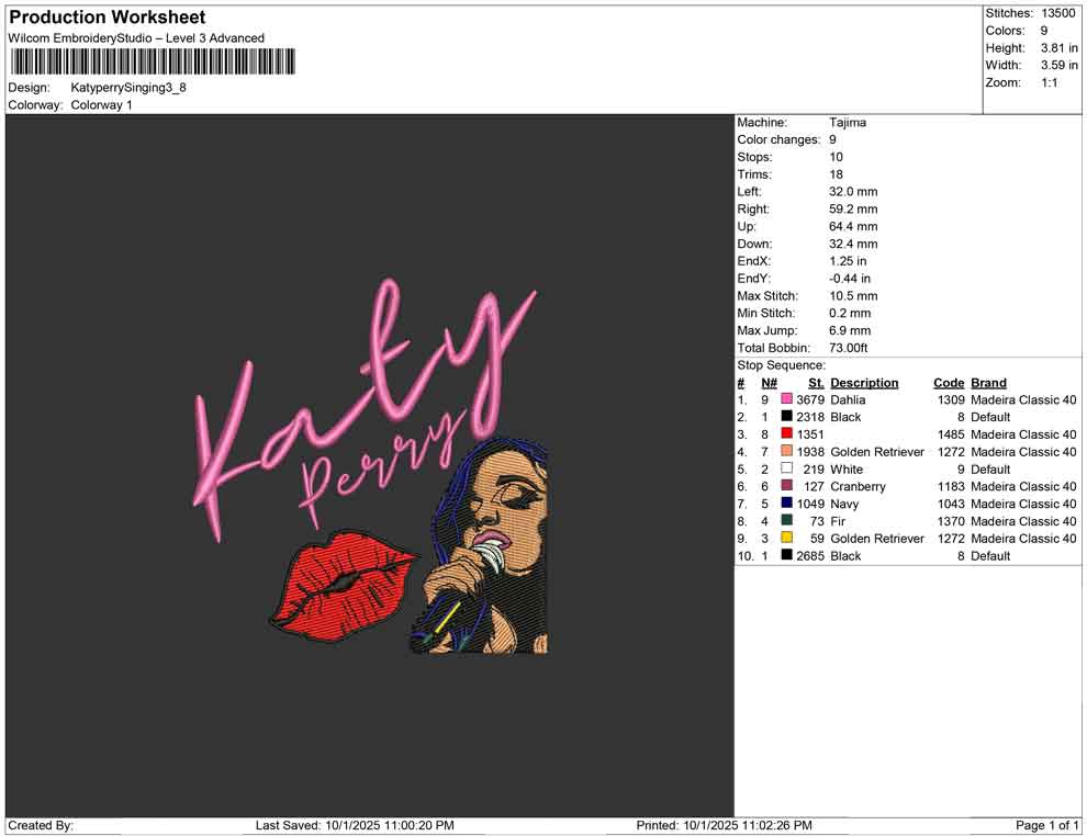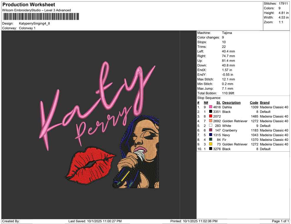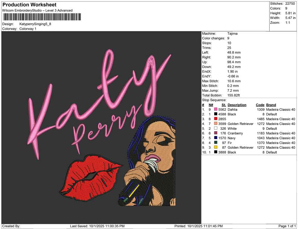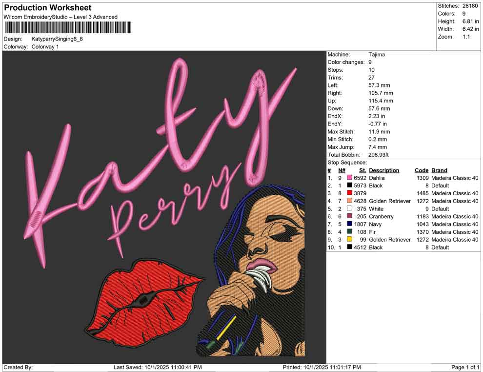 Katy perry Singing embroidery design