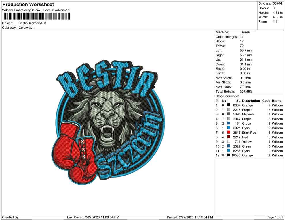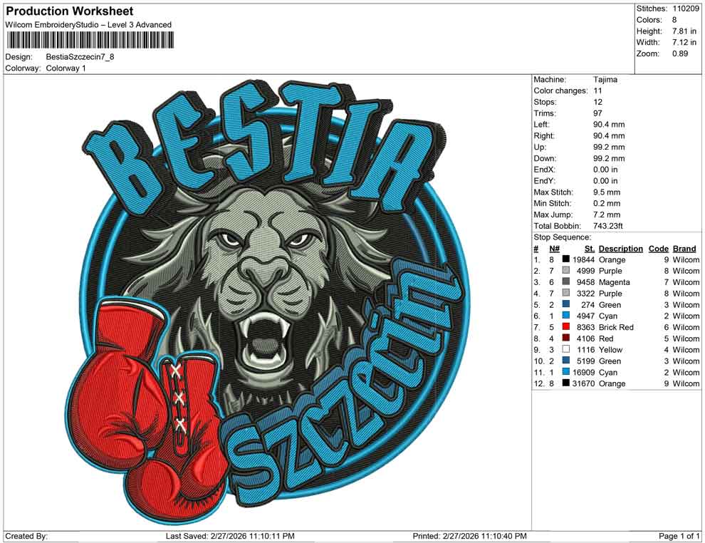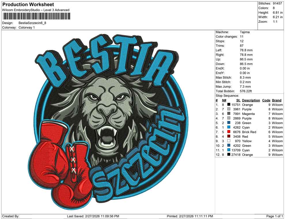 Bestia Szczecin embroidery design