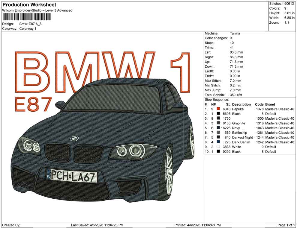 Bmw 1E87 embroidery design