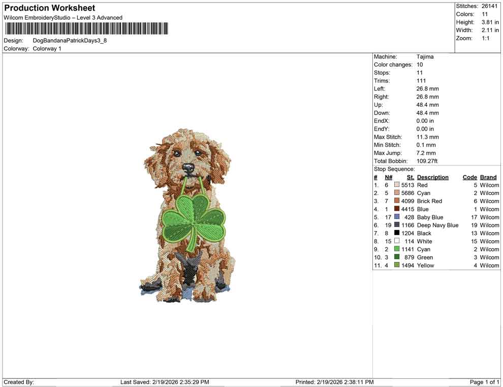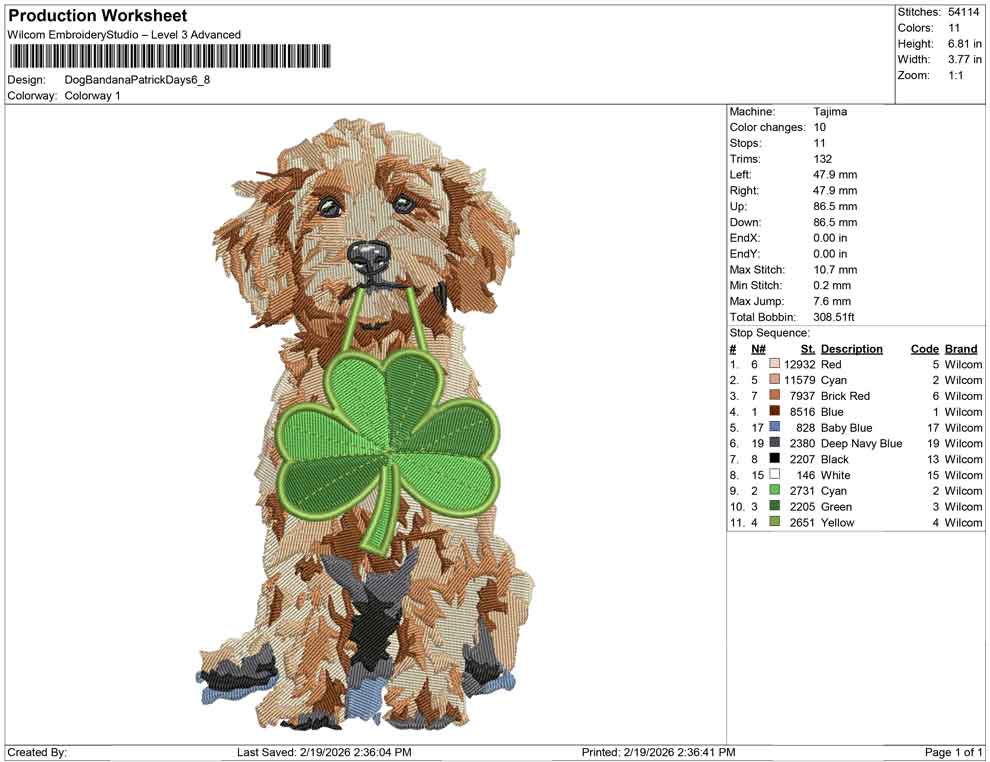 Dog Bandana Patrick Days Embroidery Design