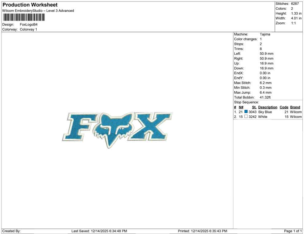 Fox Logo B embroidery design