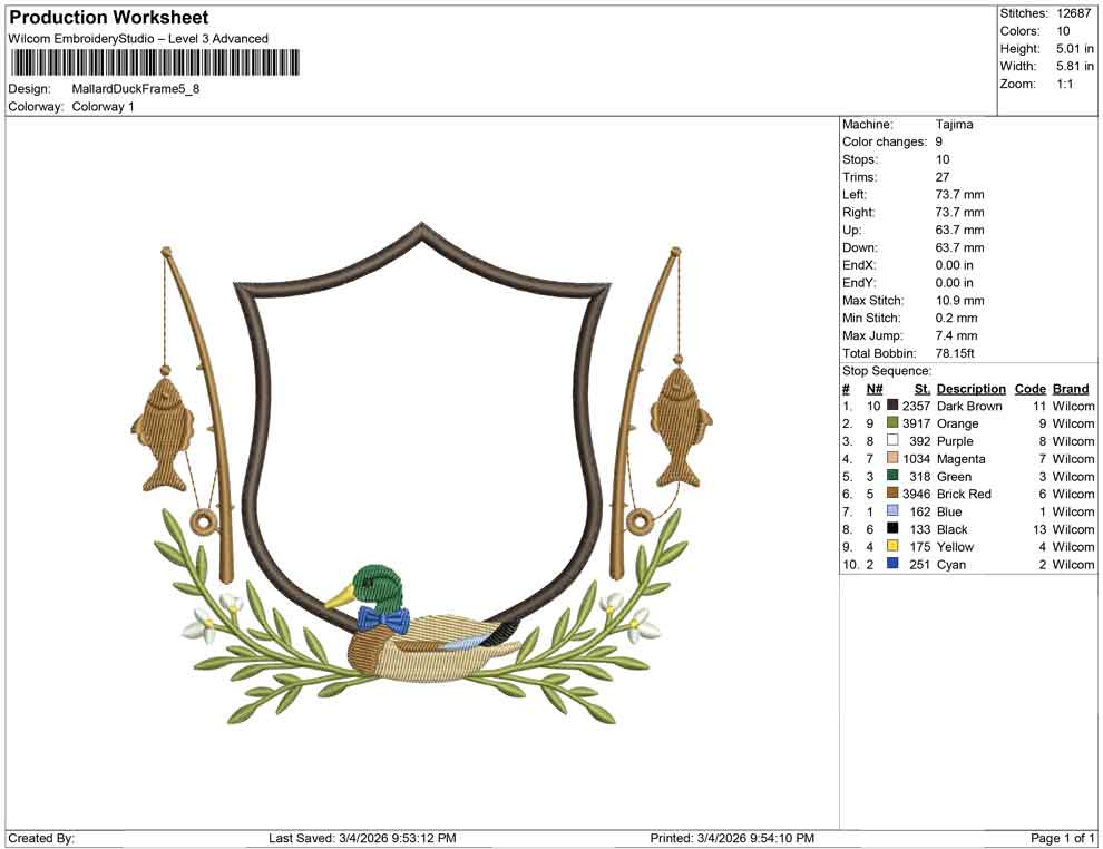 Mallard Duck Frame embroidery design