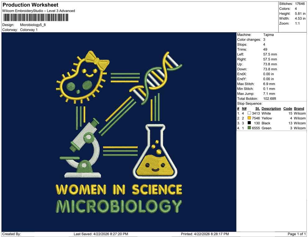 Microbiology embroidery design