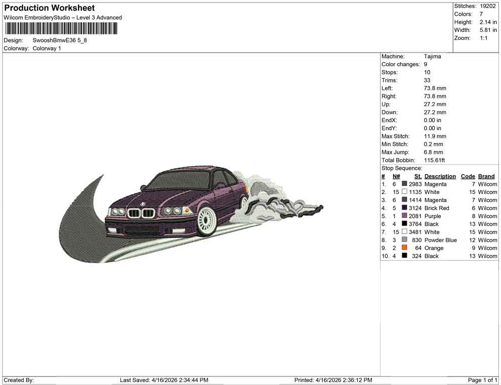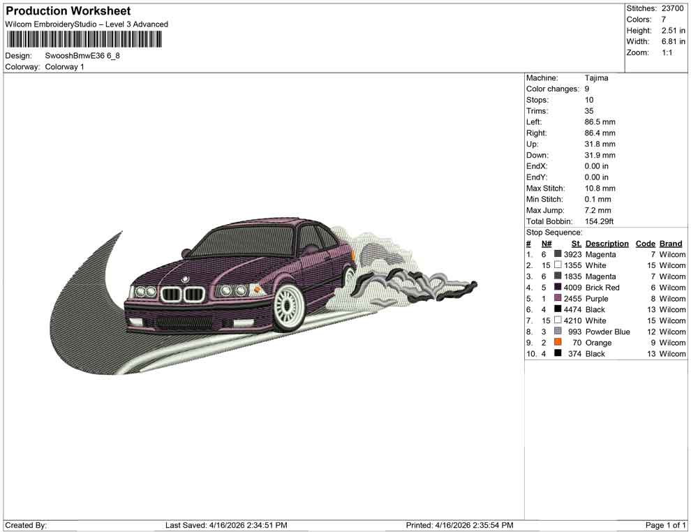 Swoosh Bmw E36 embroidery design