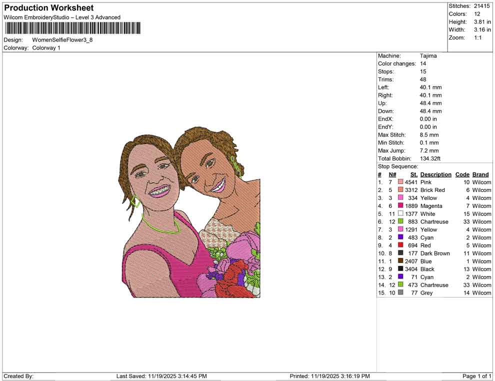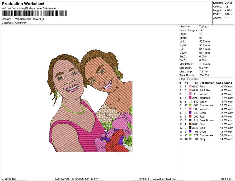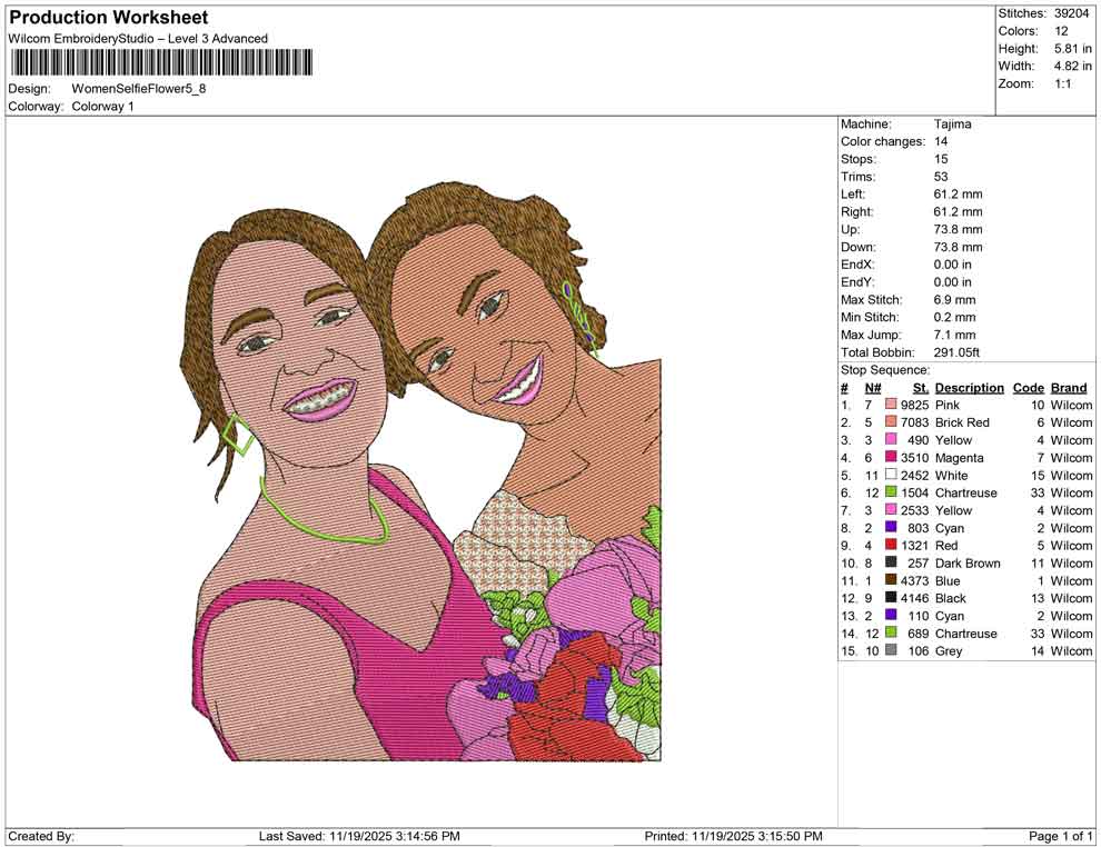 Women Selfie Flower embroidery design